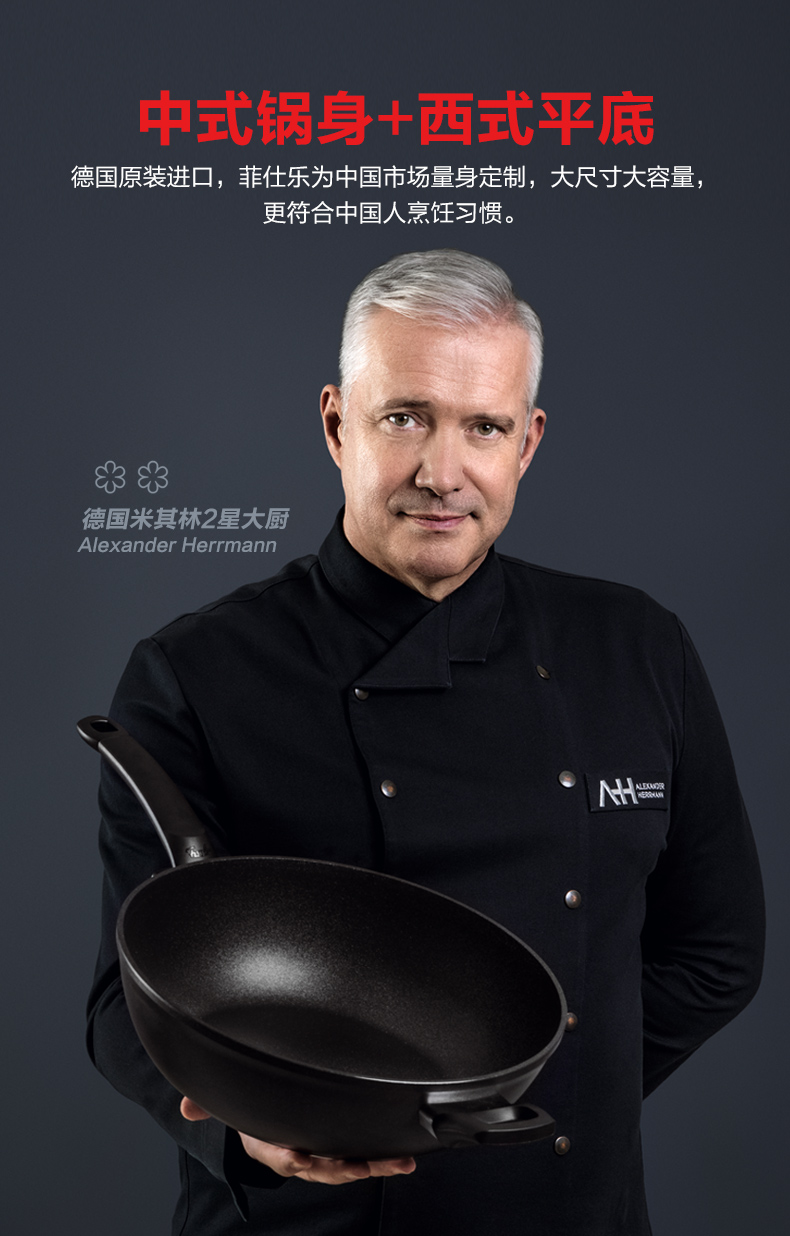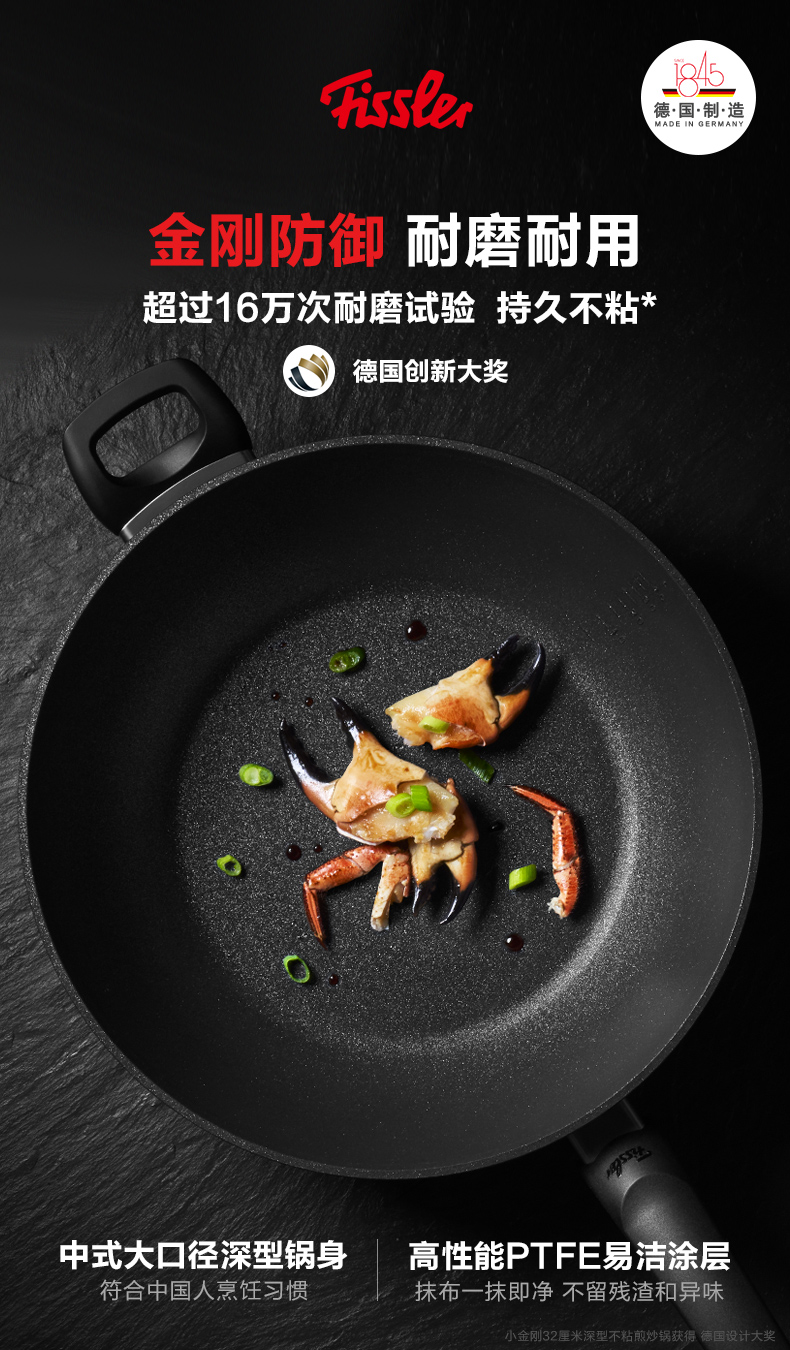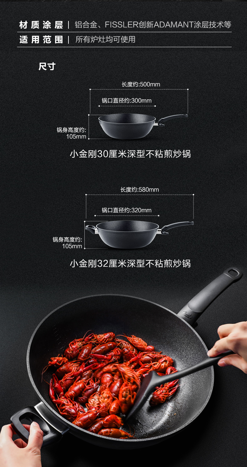 德国菲仕乐Fissler小金刚深型不粘锅家用炒锅耐磨炒菜铸铁锅通用