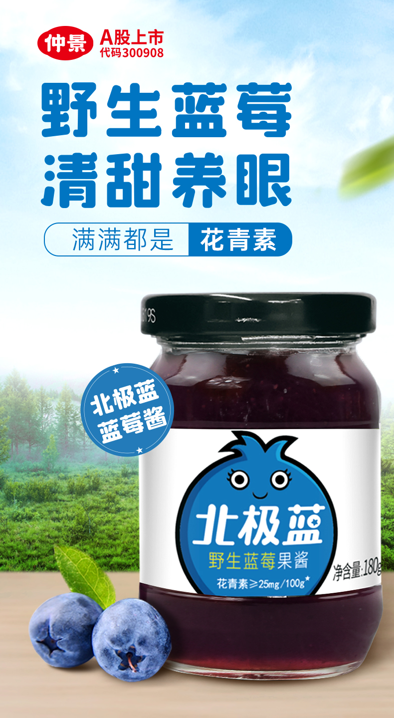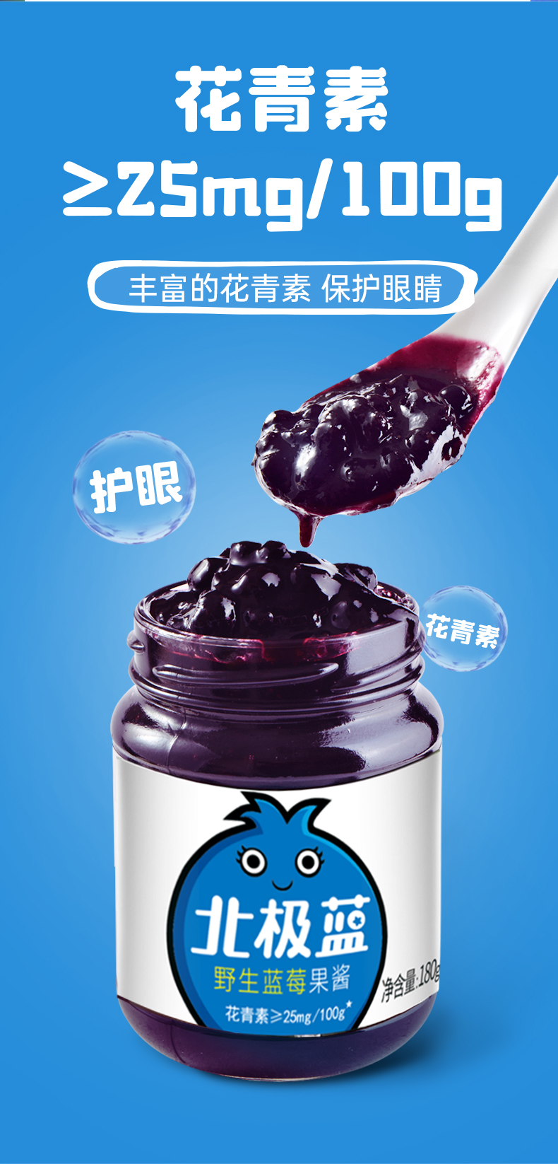 【精选蓝莓】北极蓝野生蓝莓越桔果酱180g*2瓶