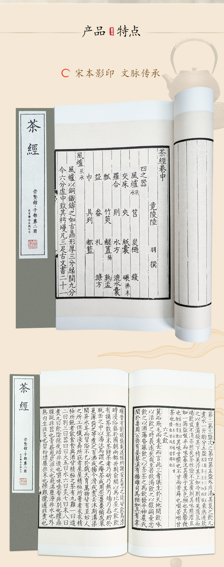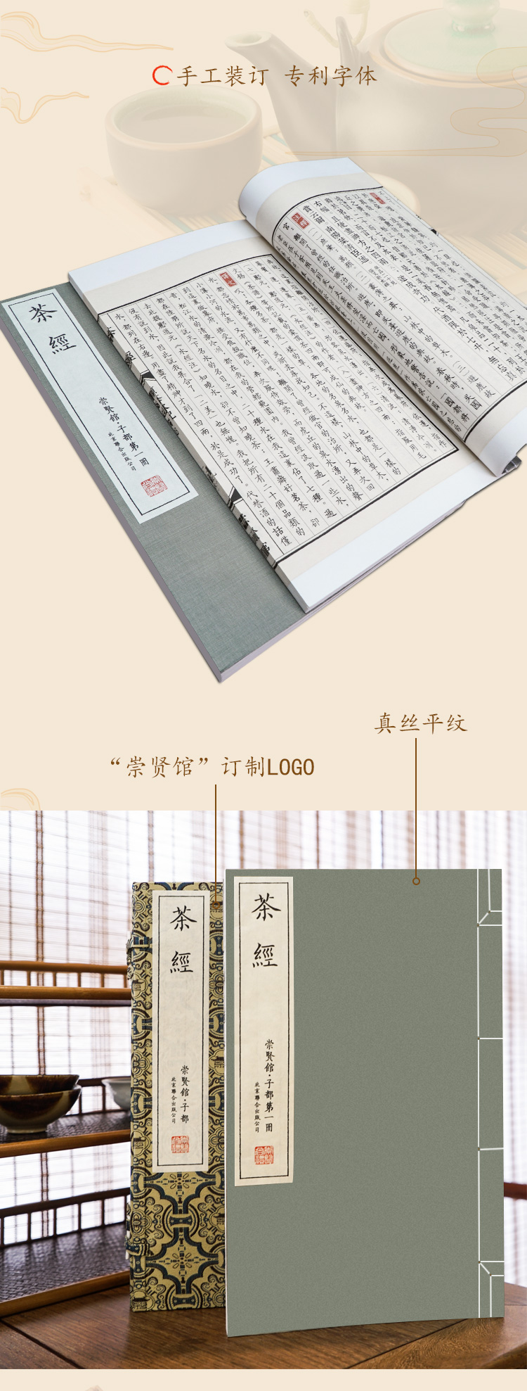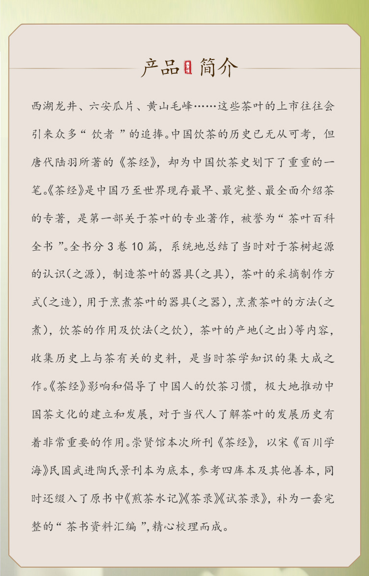 崇贤馆尚礼《茶经》手工宣纸线装繁体竖排影印本 一函三册