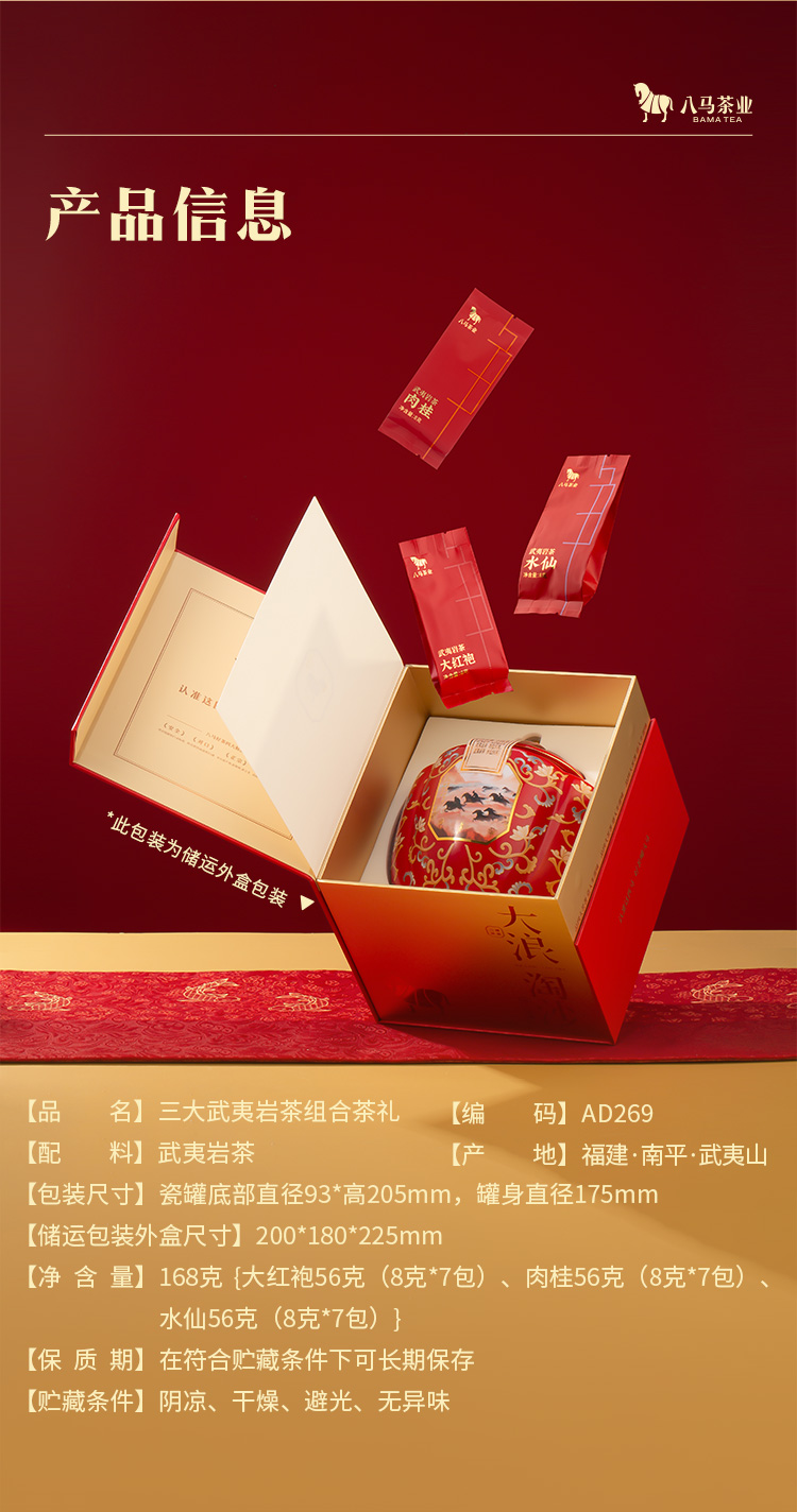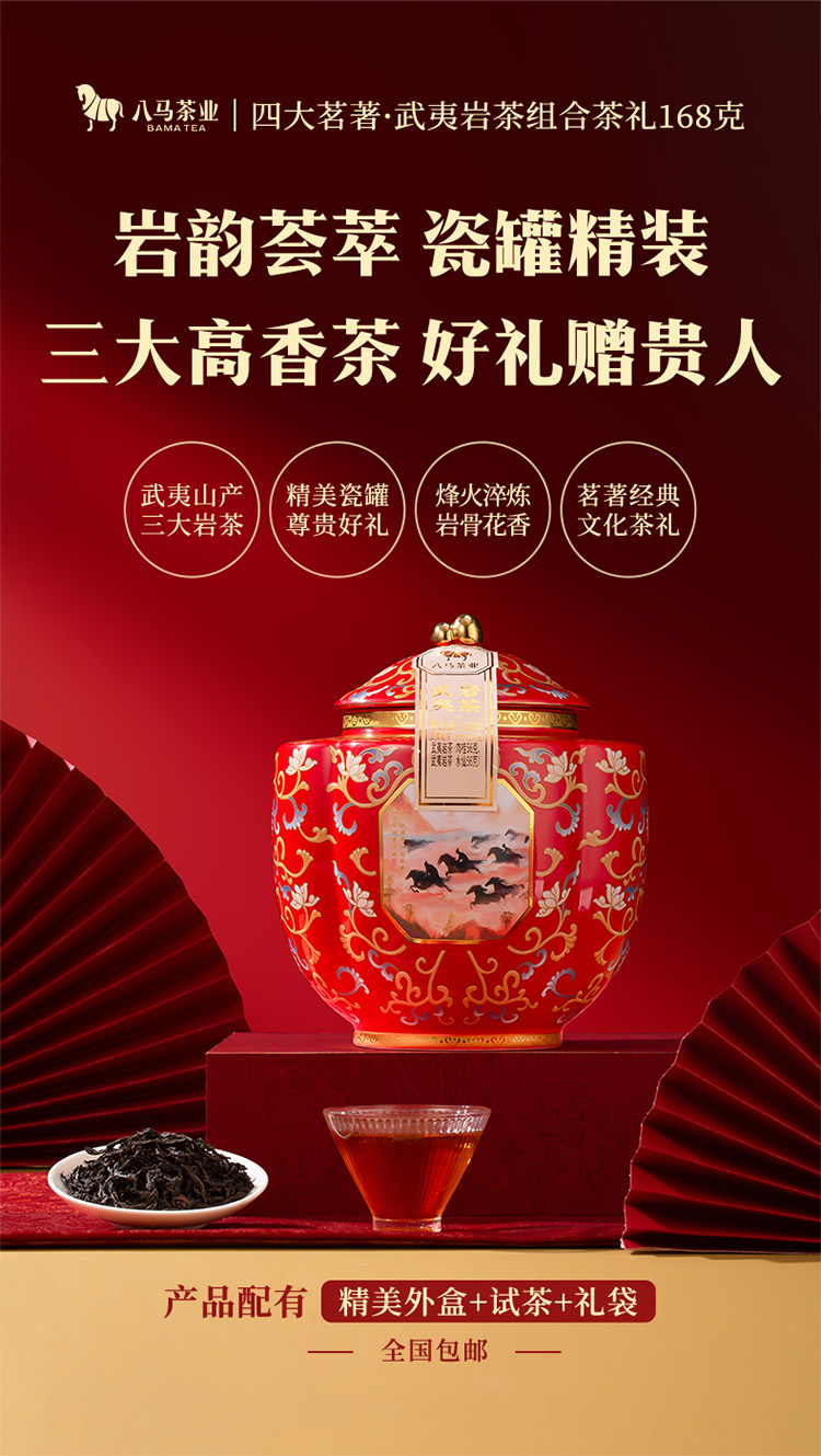 八马茶业|四大茗著·武夷岩茶组合大红袍+水仙+肉桂168g罐装