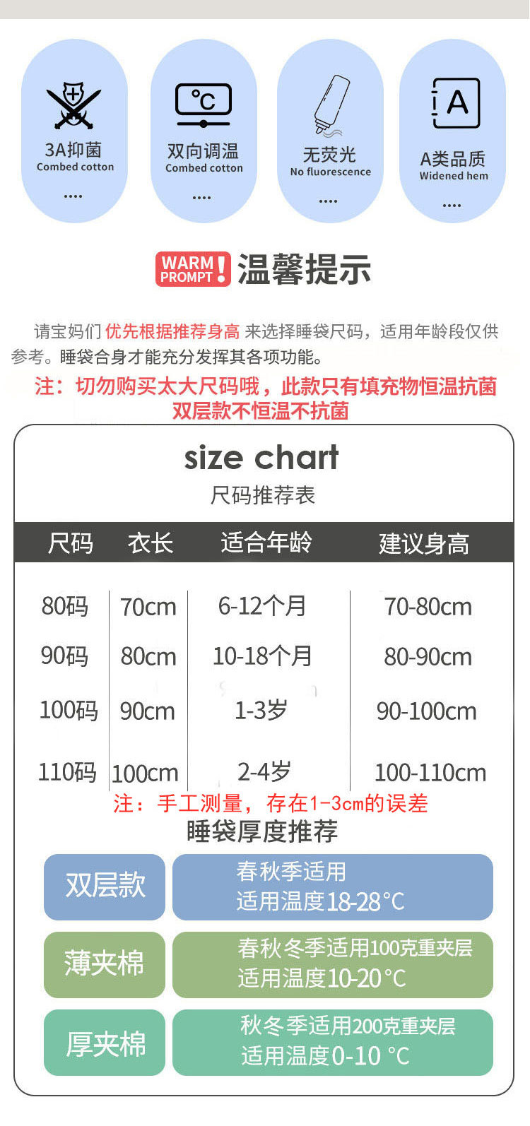 【恒温抗JUN分腿睡袋】秋冬卡通婴儿睡袋 纯棉恒温a类儿童睡袋 可拆袖宝宝防踢被