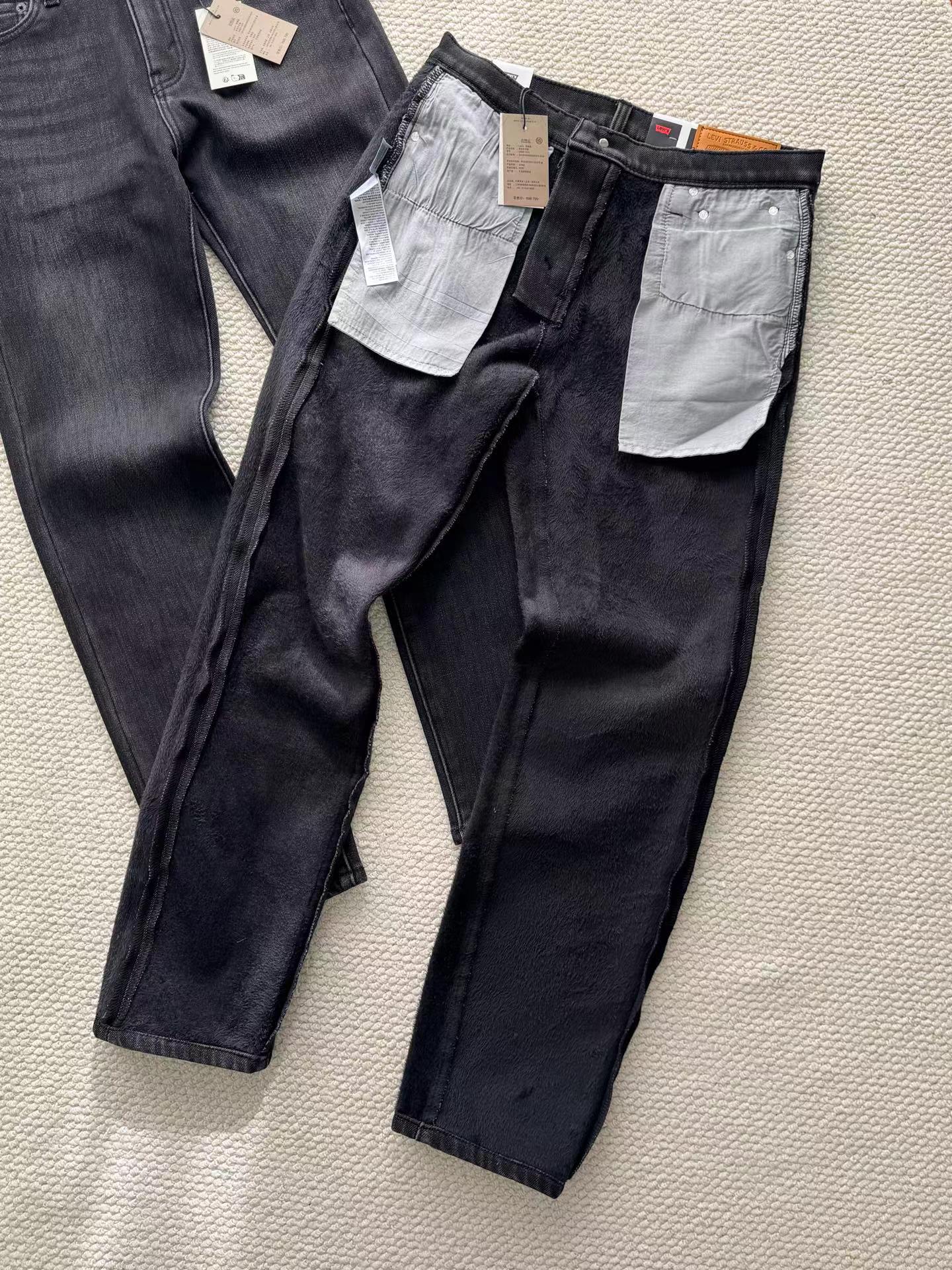 25秋冬新款男士锥形加绒休闲牛仔裤,,加绒水洗牛仔裤,标志贴摆原厂客供的纽扣拉链,水洗工艺,立体剪裁,兼具保暖不臃肿,同时版型有型显瘦,量与型的结合,整体非常的合体舒适,同时能够修身提臀,自然修身的版型,塑形的同时没有拘束感。版型剪裁优良的车线缝制,裤脚边收边整洁有序,后裤袋侧面有个小红标,裤子内面缝制洗标,精 工的剪裁与精湛的车线能够彰显裤子的档次风格,非常百搭的款式,你值得拥有,绅士B备品!