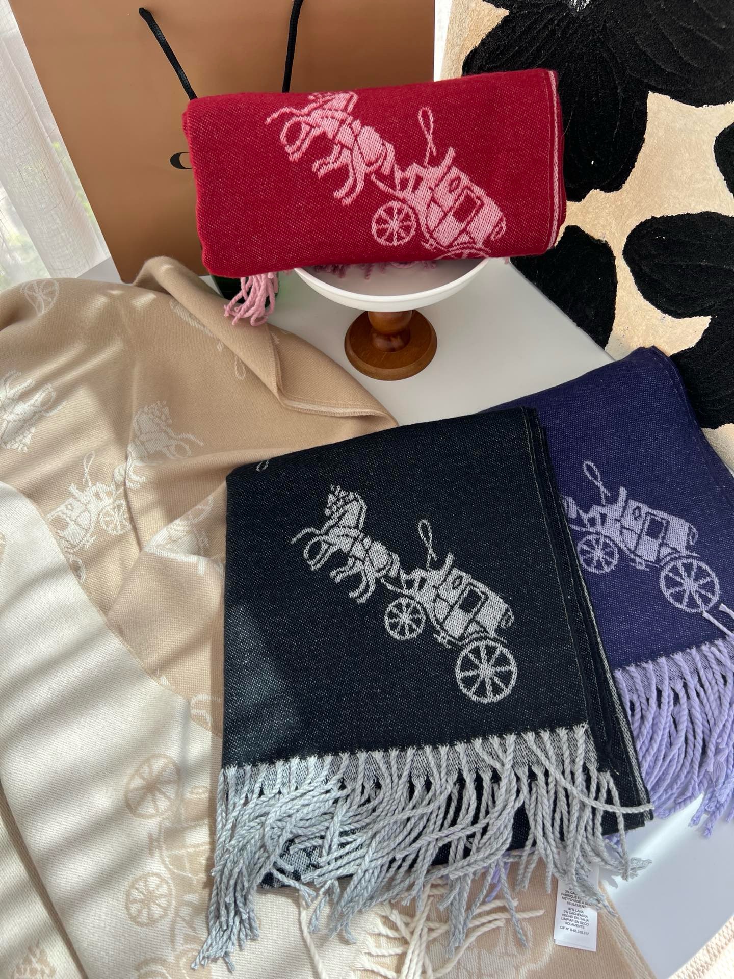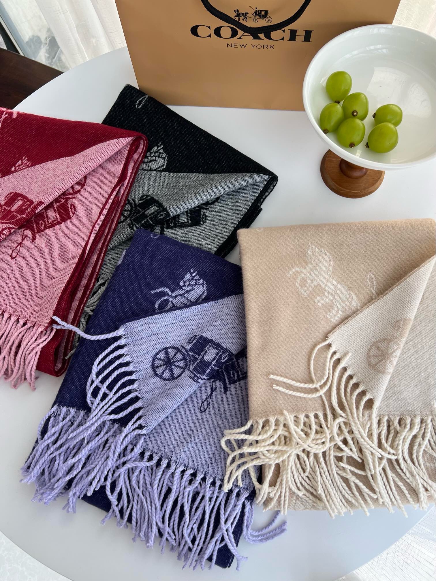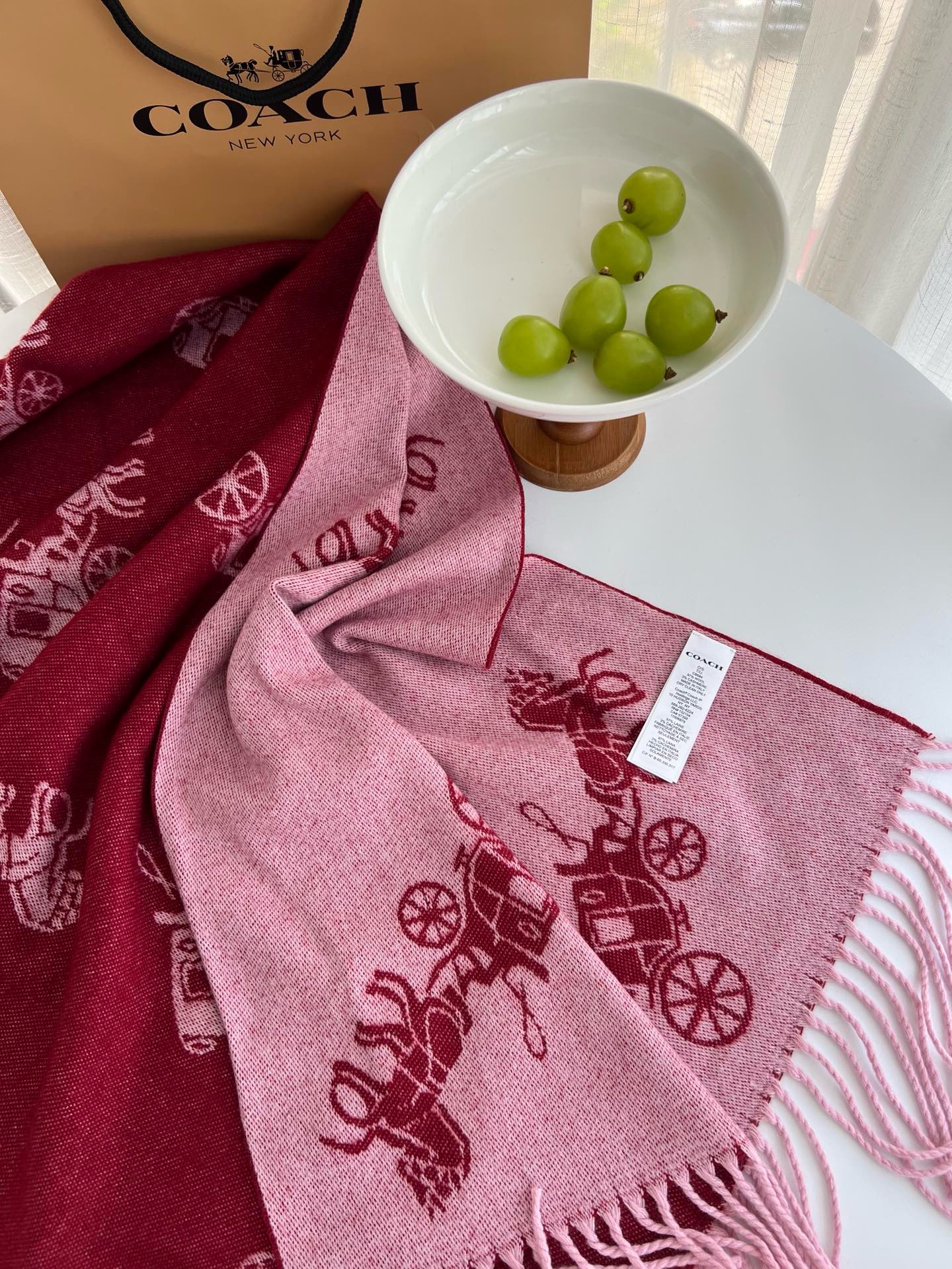Coach新款围巾🧣经典马车Logo 双面双色