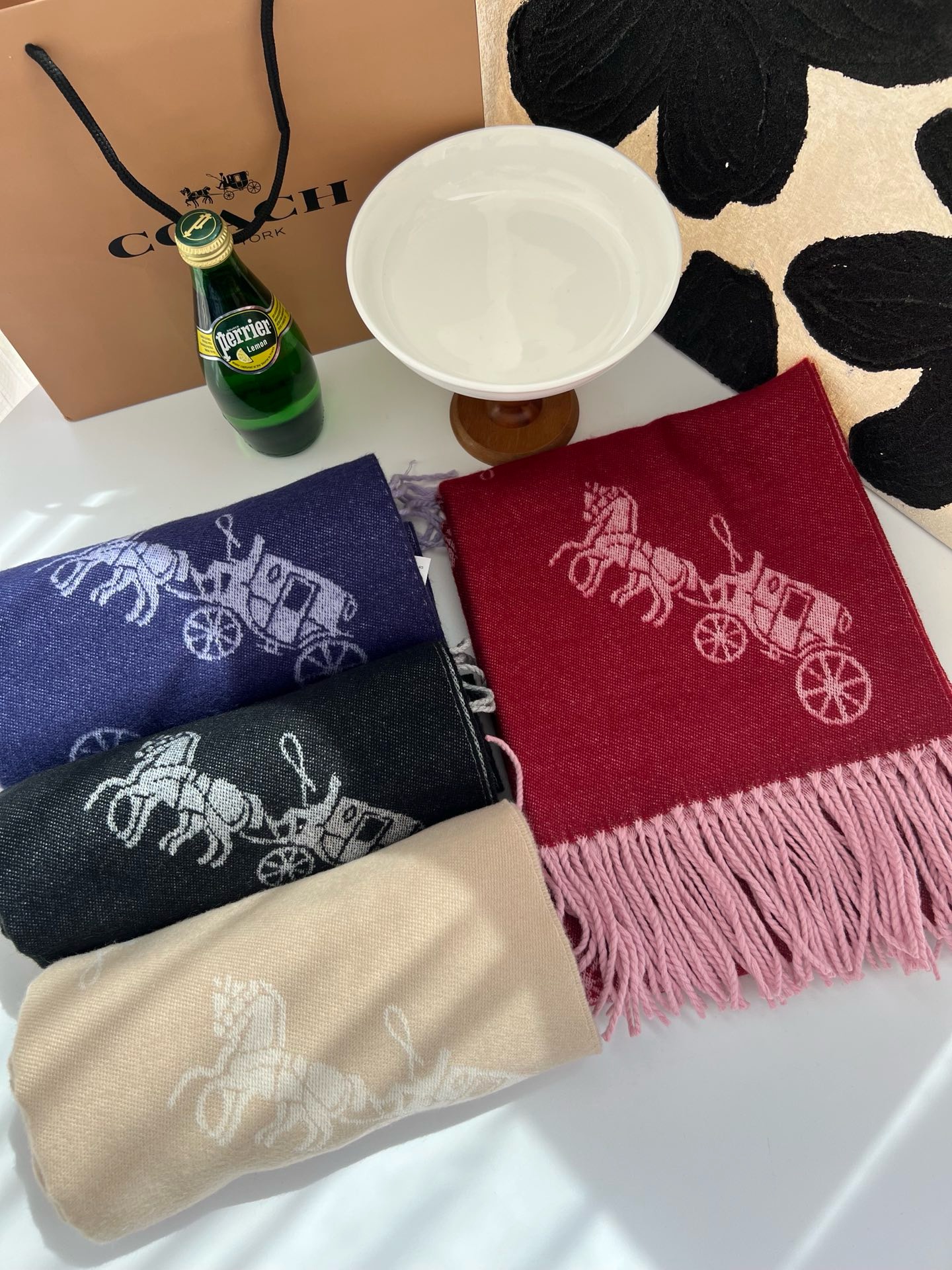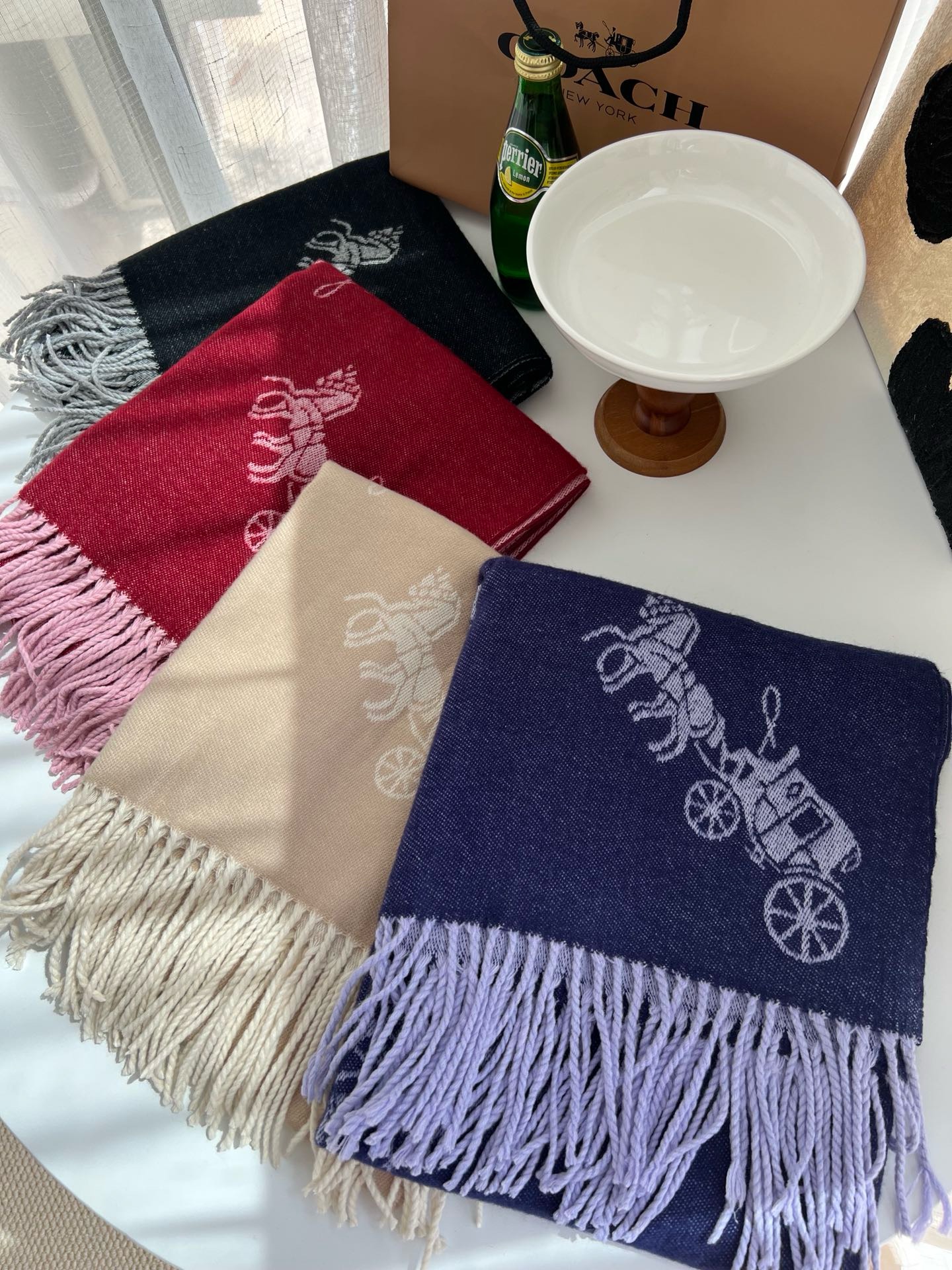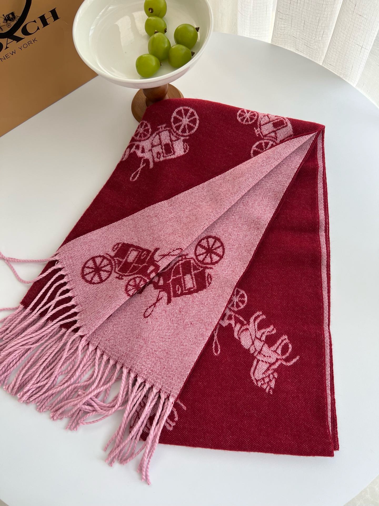 Coach新款围巾🧣经典马车Logo 双面双色