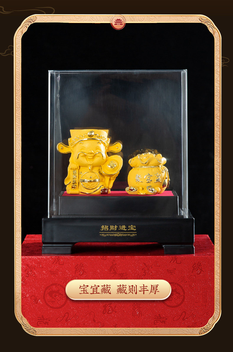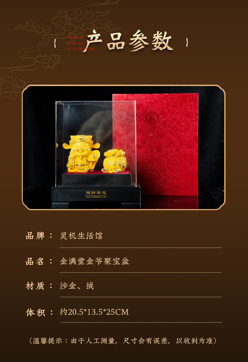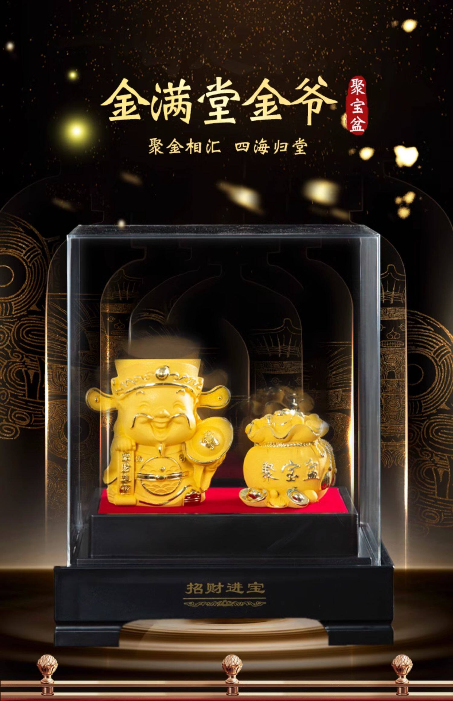 【祈愿吉品】玉满堂财神聚宝盆摆件沙金吉祥物客厅装饰