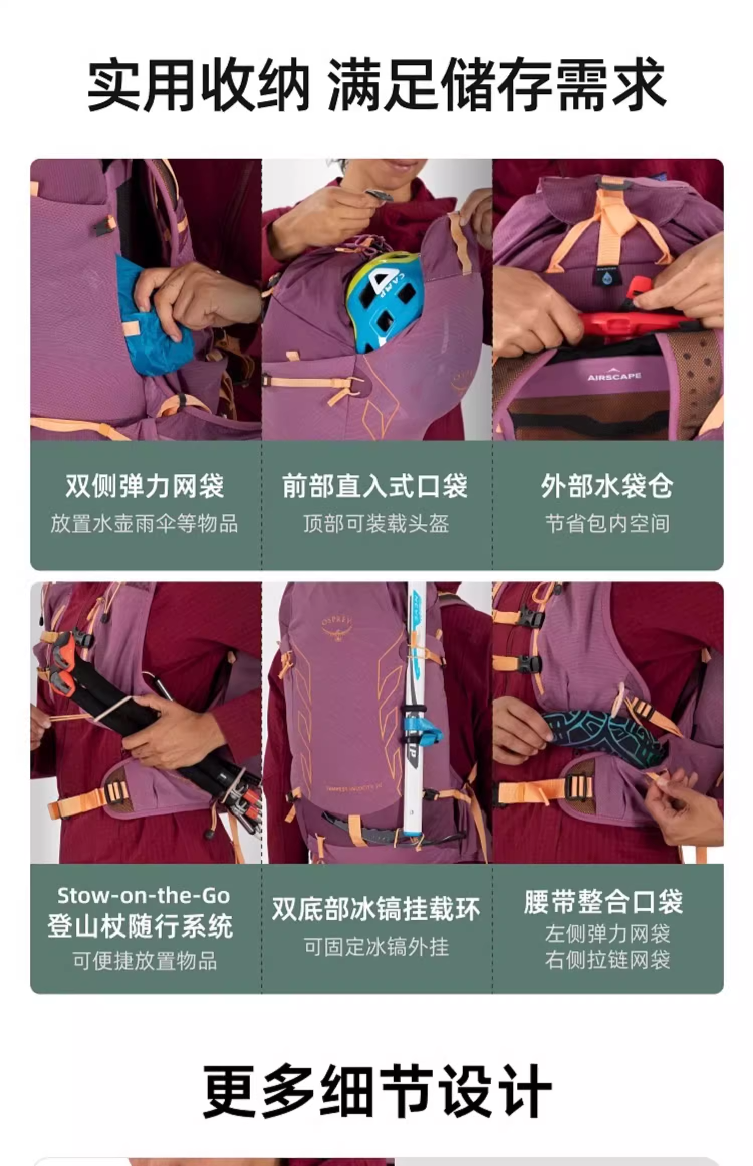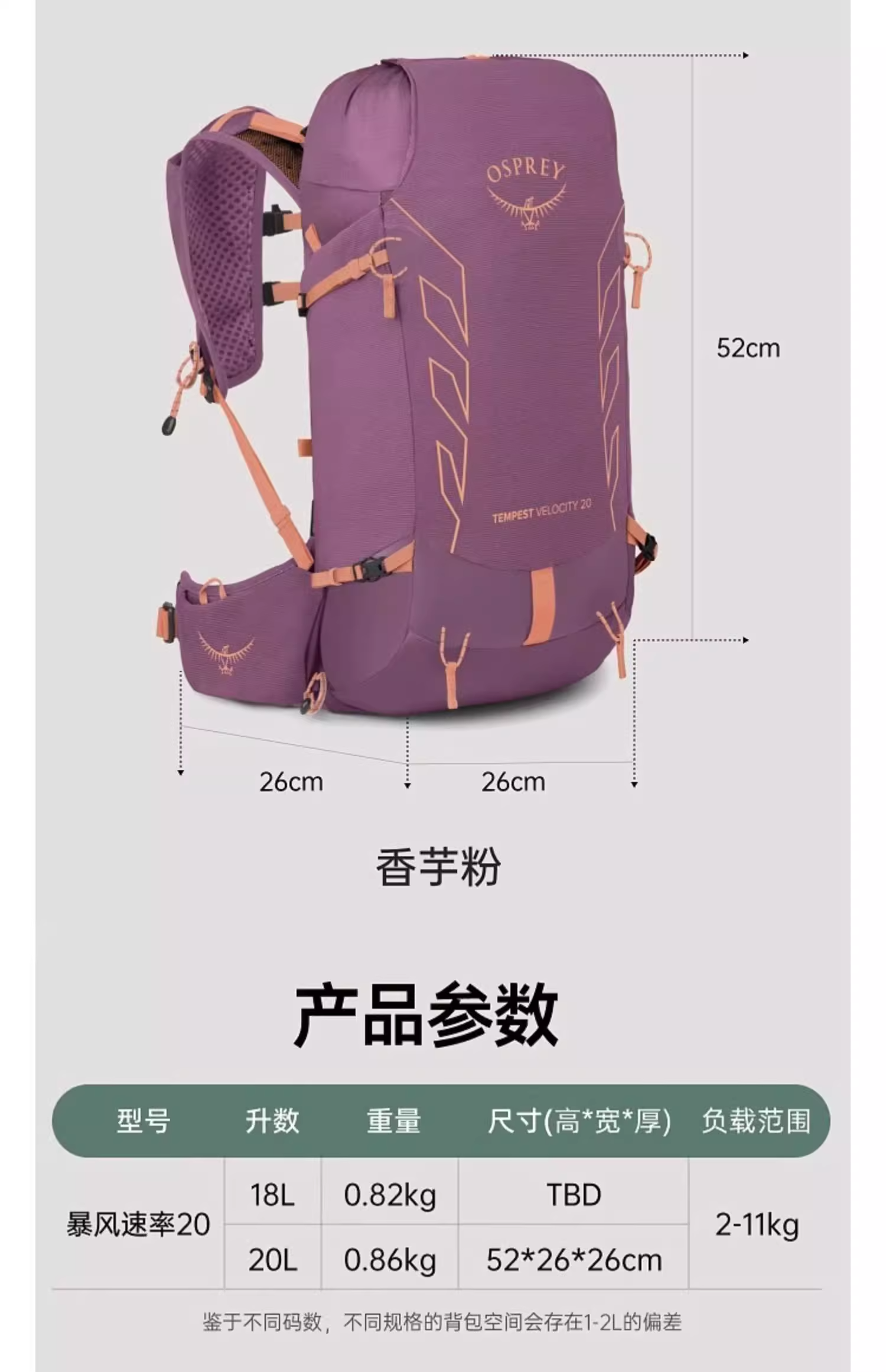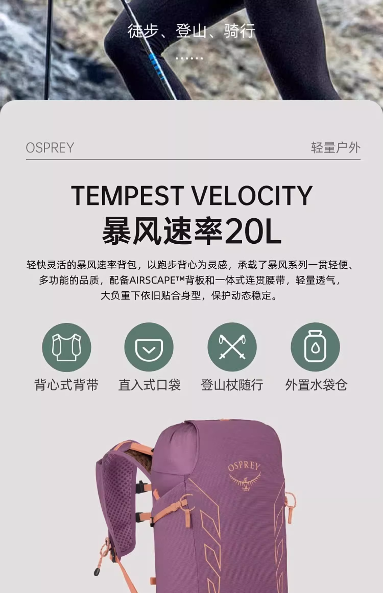OSPREY Tempest Velocity小鹰暴风速率20升30升背包户外徒步登山包女