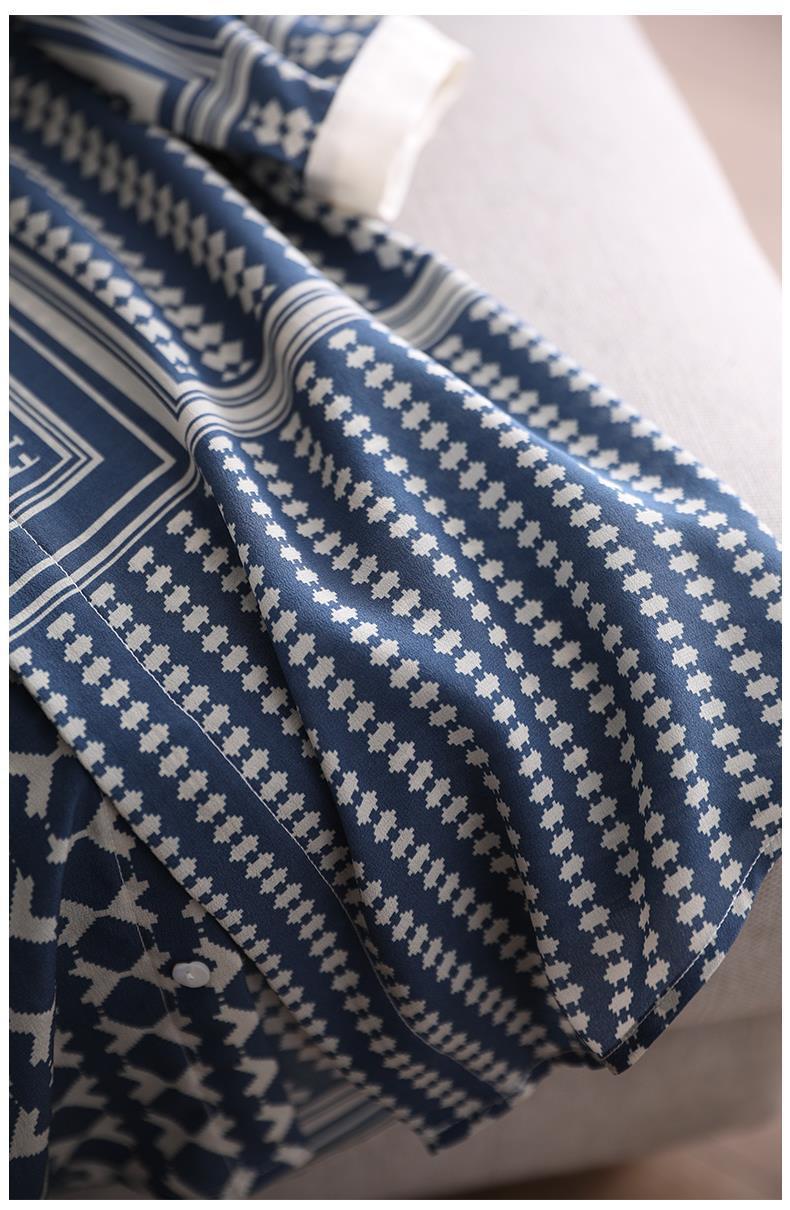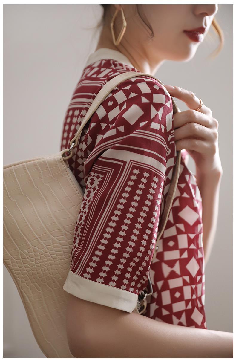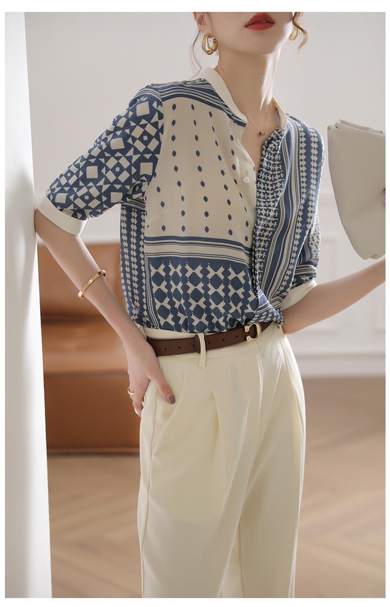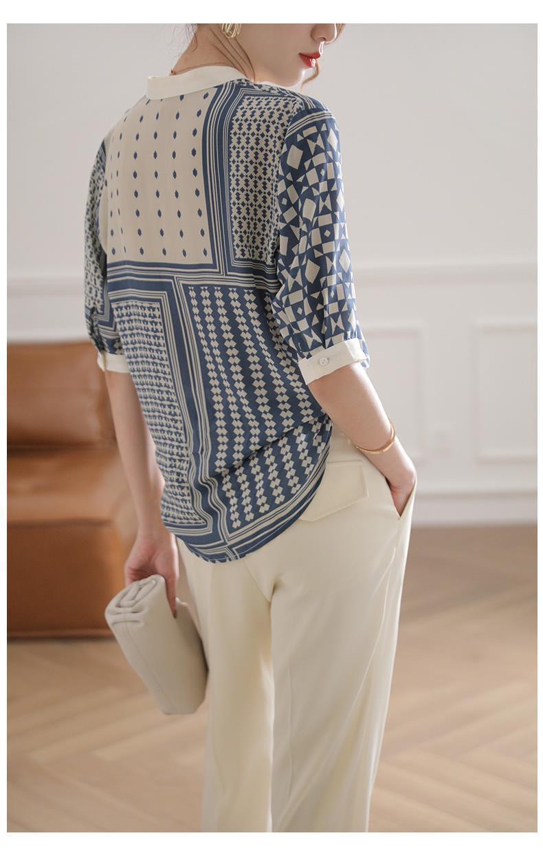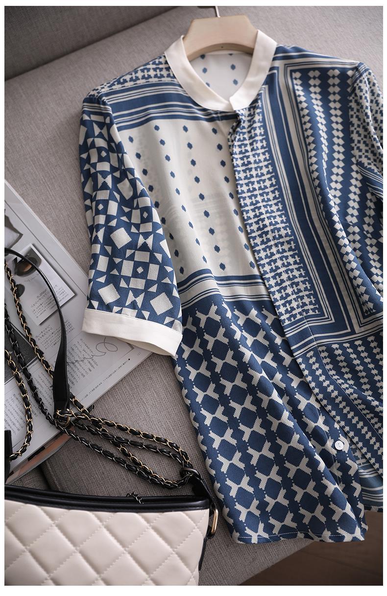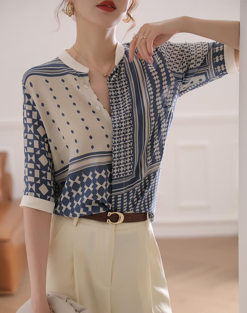 【满满设计感】法式真丝衬衫 中袖立领 复古格子条纹 设计感小众蚕丝上衣