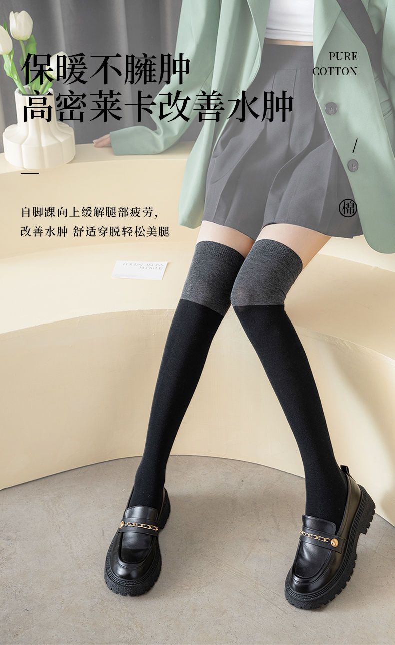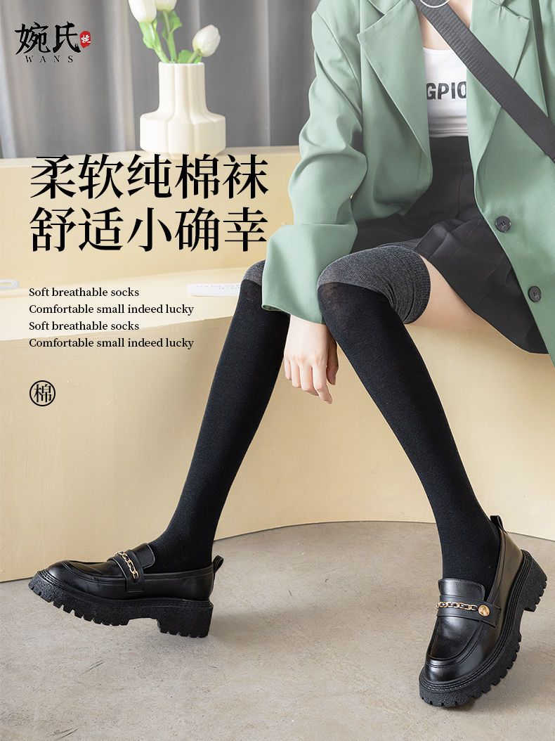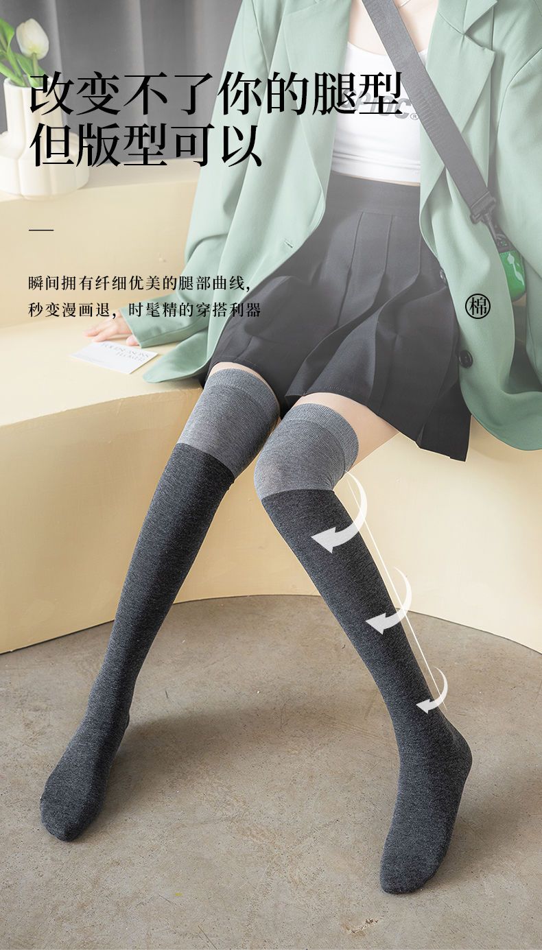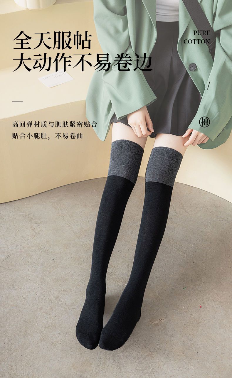 过膝长筒无骨袜子女纯棉高筒夏天薄款春秋季过膝盖大腿长袜