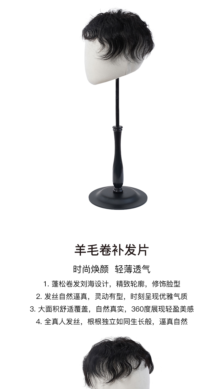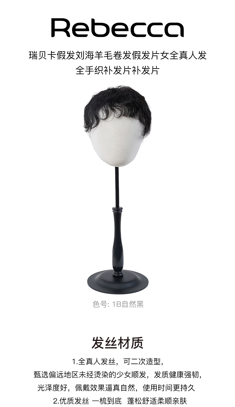 Rebecca瑞贝卡假发刘海羊毛卷发假发片女全真人发全手织补发片补发片