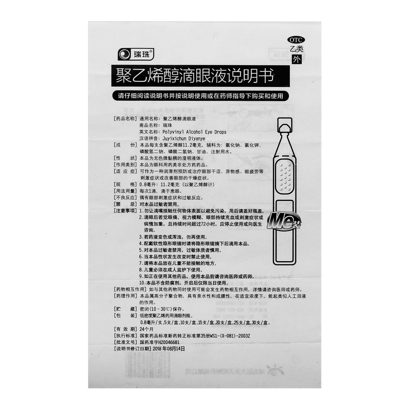 瑞珠 聚乙烯醇滴眼液 5支 预防或治疗眼部干涩 异物感 眼疲劳