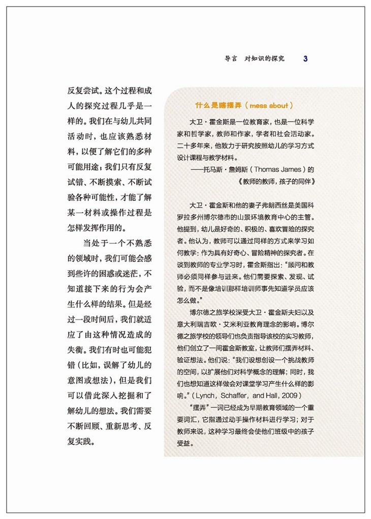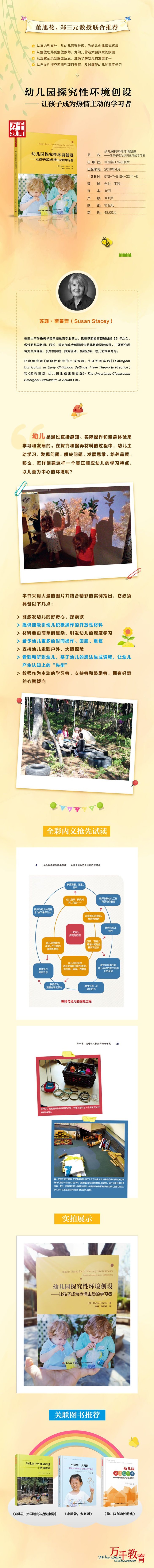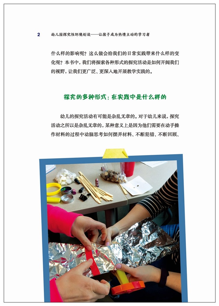 幼儿是极具热情和好奇心的探索者、挑战者和冒险者。他们在对外部世界不停歇的探索中,获得生理与心理的双重满足感,同时获得感知觉、有意注意、语言与思维等能力的发展。那么,幼儿教师如何创设适宜幼儿探究和冒险的开放性室内外环境,如何尊重和引发幼儿的好奇和质疑呢?本书为我们提供了答案。此外,本书还告诉我们,科学探究是教师与幼儿共同成长的美好旅程,教师的观察、好奇、主动研究、档案记录和反思同样重要。本书既有典型的案例,又有清晰明了的图片,非常适合幼儿教师阅读。
