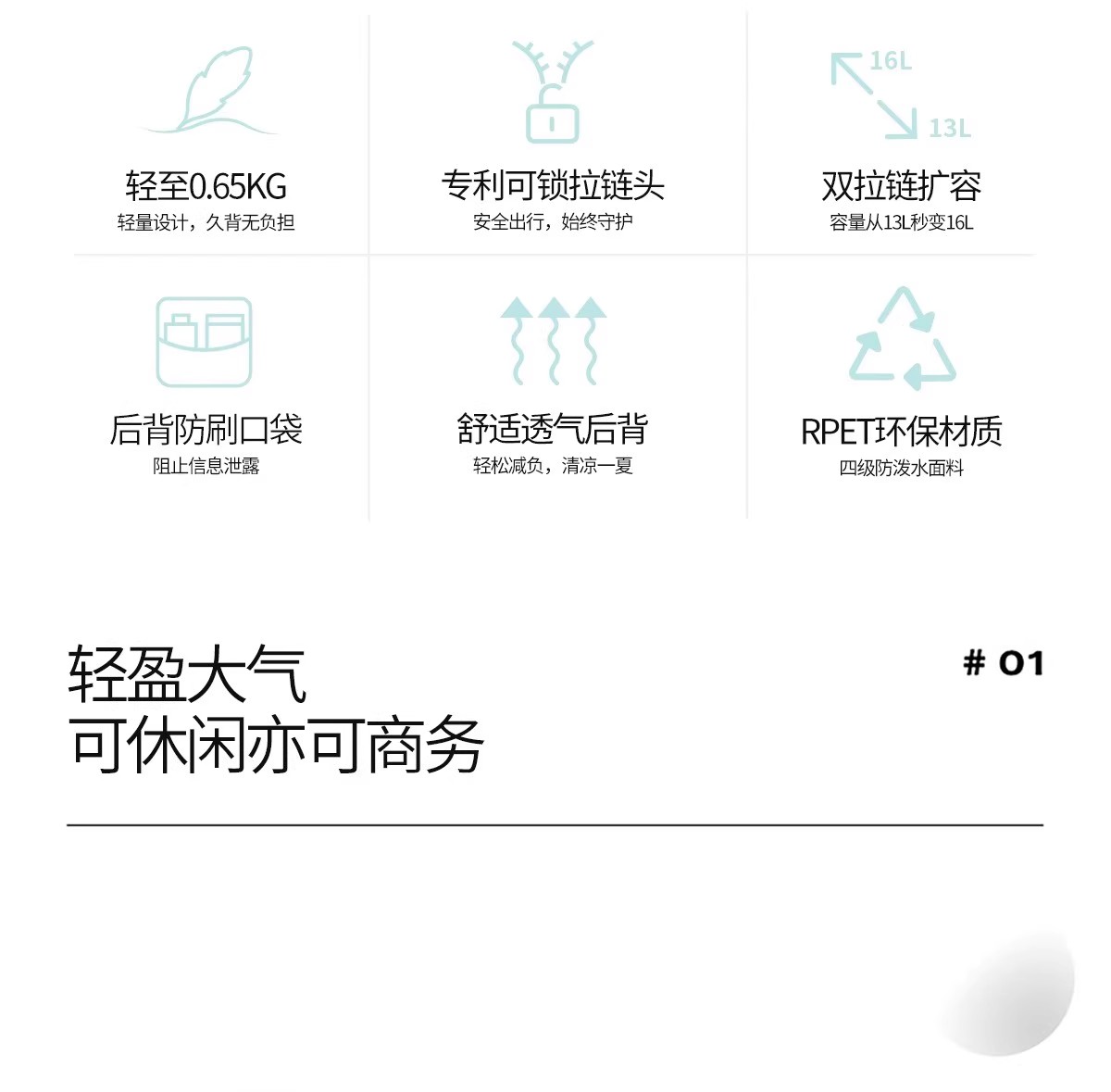 XDDESIGN爱思迪526轻行系列旗舰背包 容量从13L秒变16L 轻量设计 久背无负担 专利可锁拉链 出色“包容力”防盗刷口袋