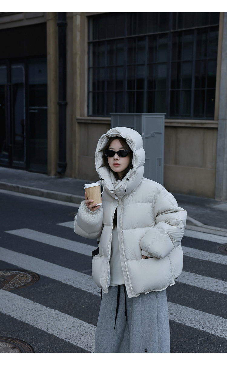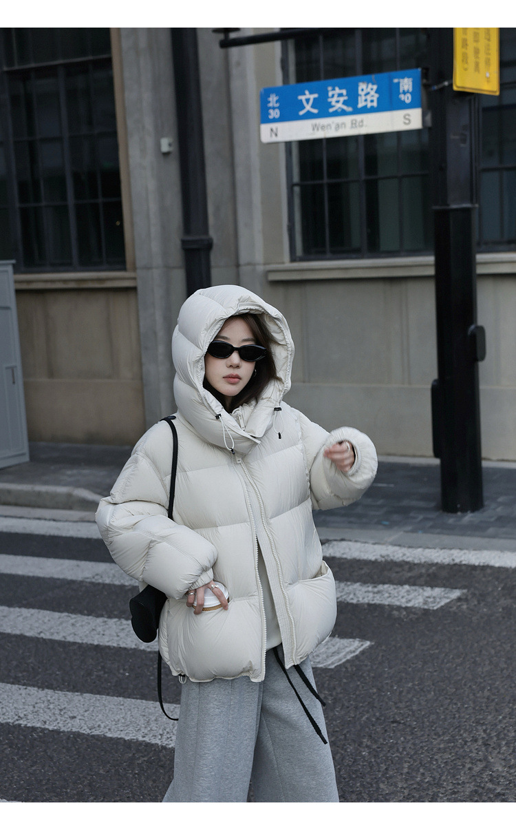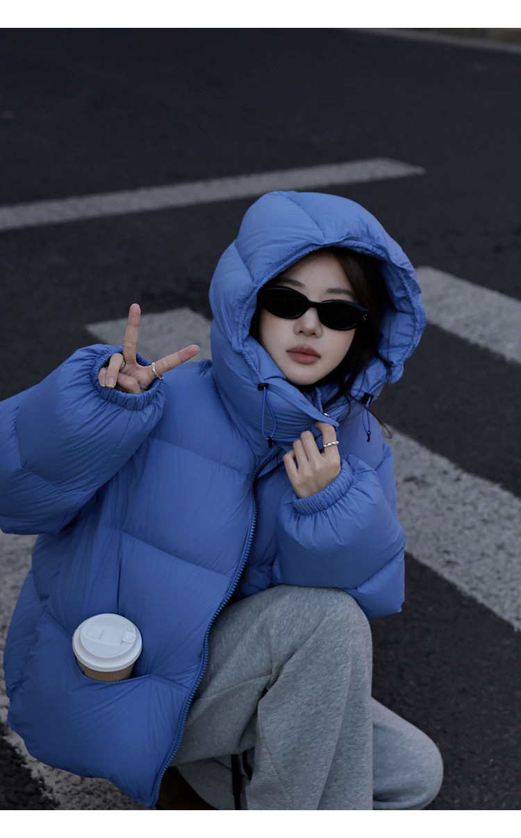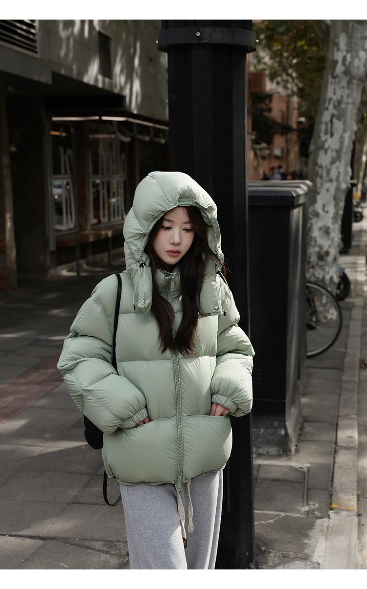 韩系短长款白鸭绒!加厚保暖连帽羽绒服女2025冬季新款泡芙百搭外套!