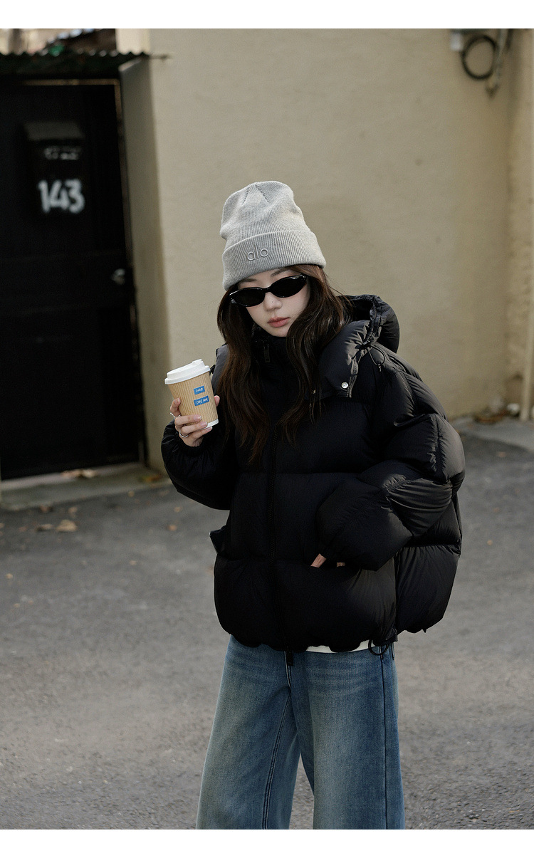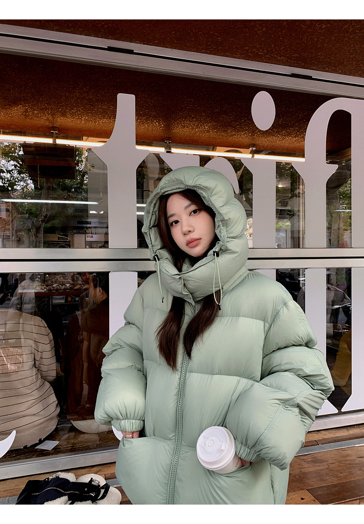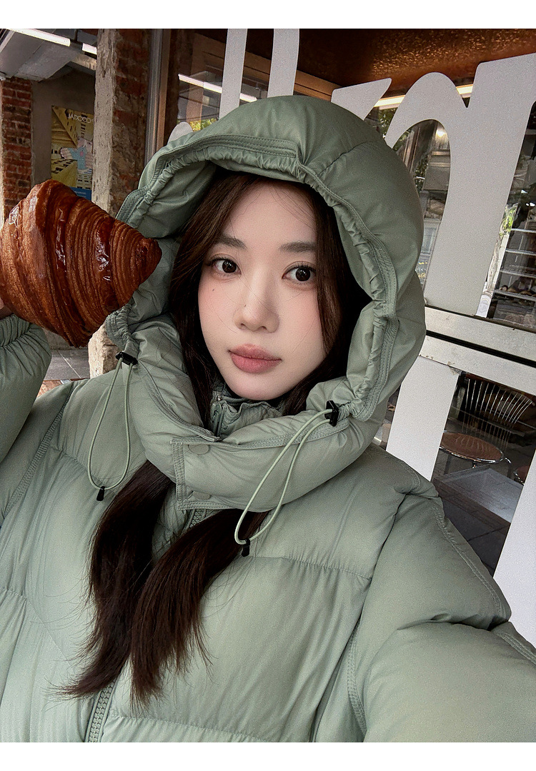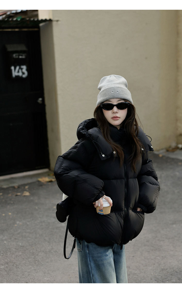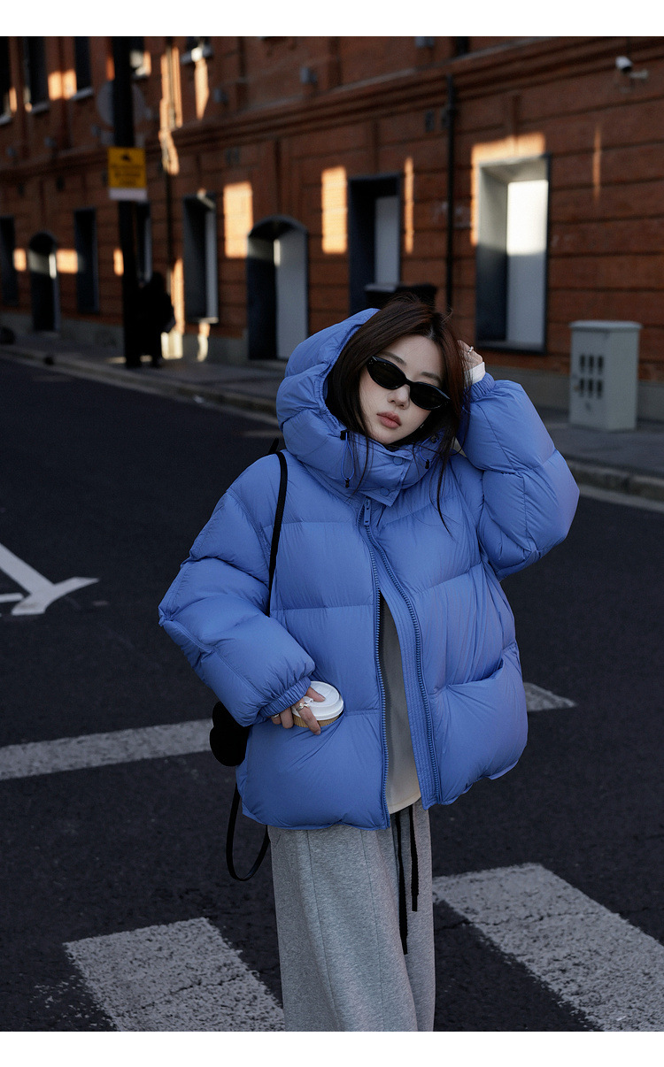 韩系短长款白鸭绒!加厚保暖连帽羽绒服女2025冬季新款泡芙百搭外套!