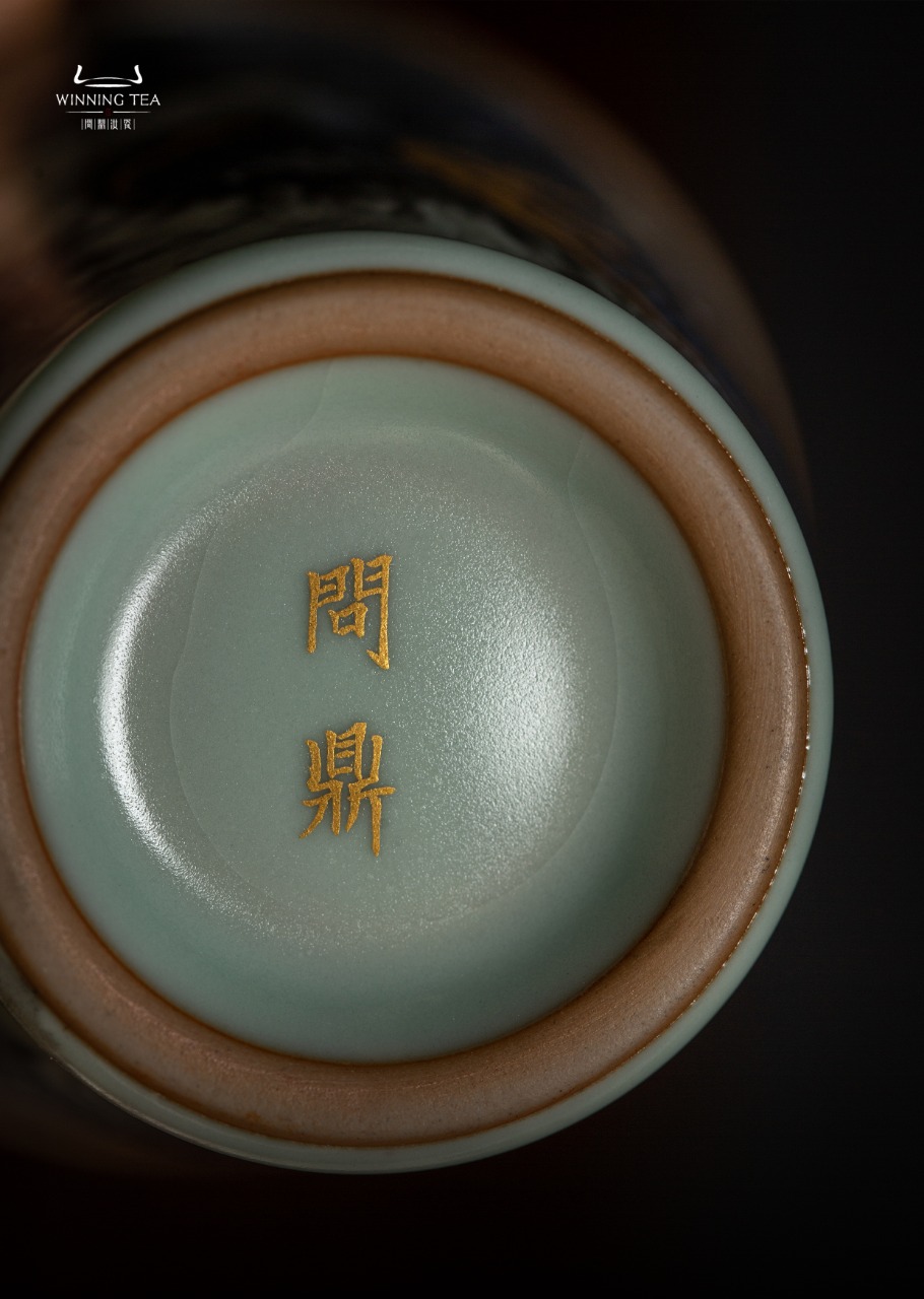 问鼎汝瓷鼎峰系列天青蛇首战鼓杯 (描金蛇纹)