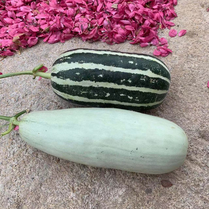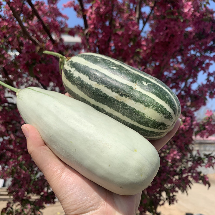 (长条浅色是博洋61、短粗绿色瓜皮纹路明显的是9号)