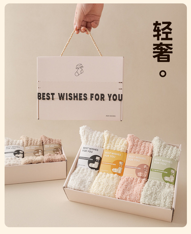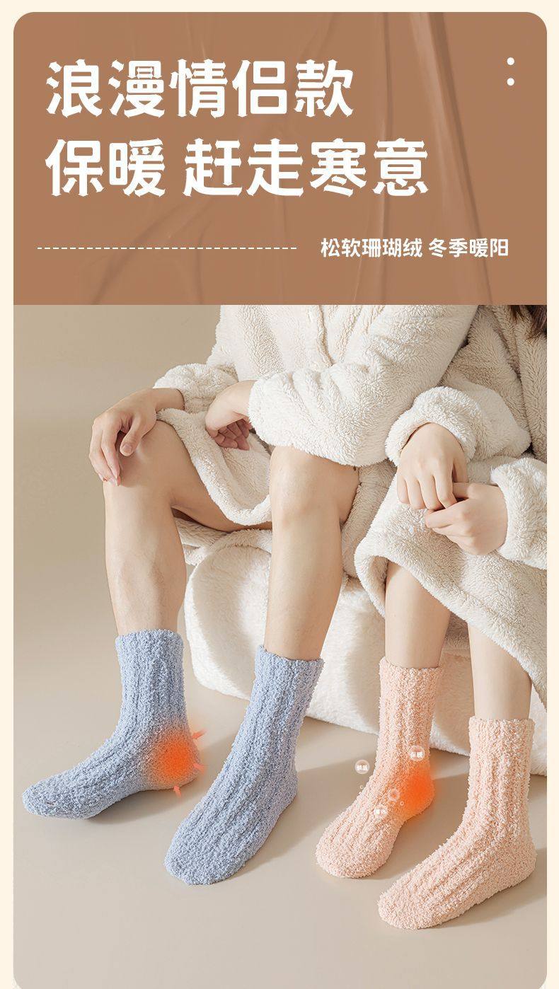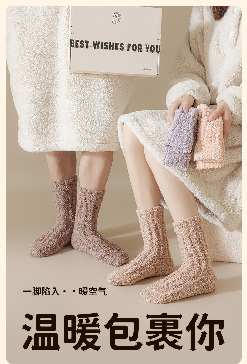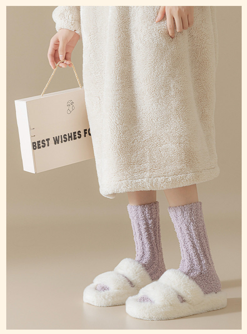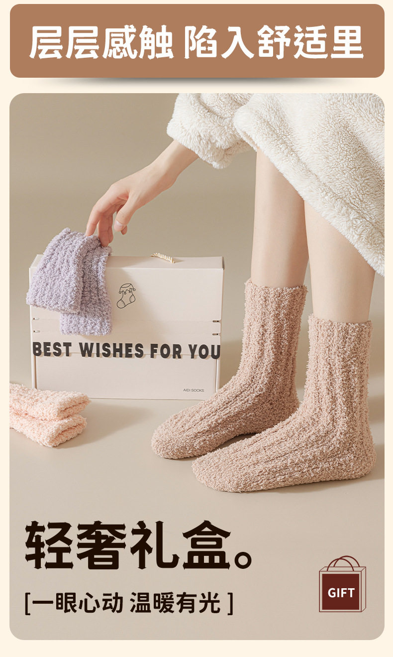 【轻奢礼盒4双装】情侣款珊瑚绒袜子秋冬季加厚保暖居家睡眠袜毛绒月子地板袜礼盒装