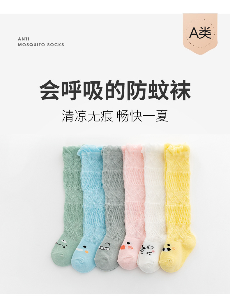 【3双装 卡通高筒防蚊袜】春夏宝宝袜子薄款防蚊中筒新生婴儿长筒袜过膝棉袜儿童长腿袜