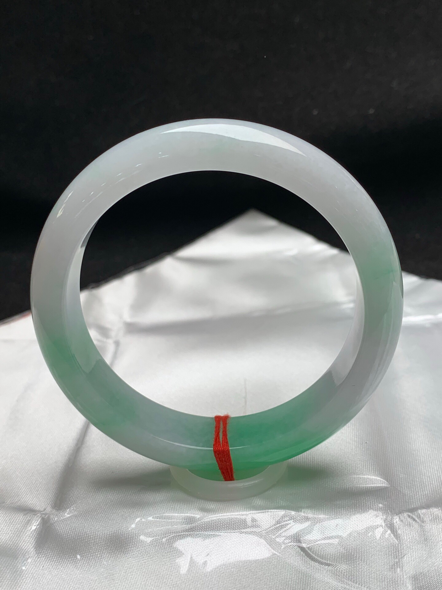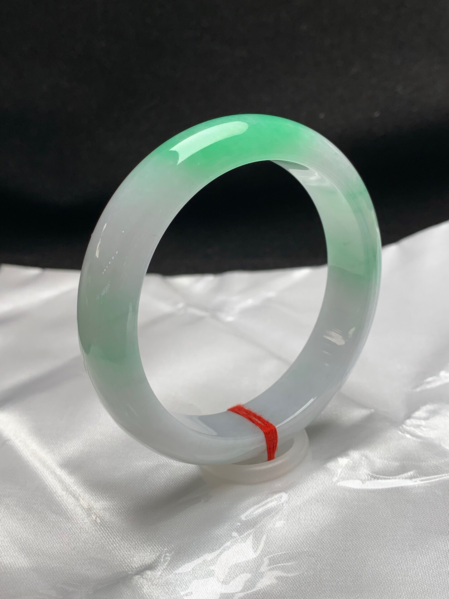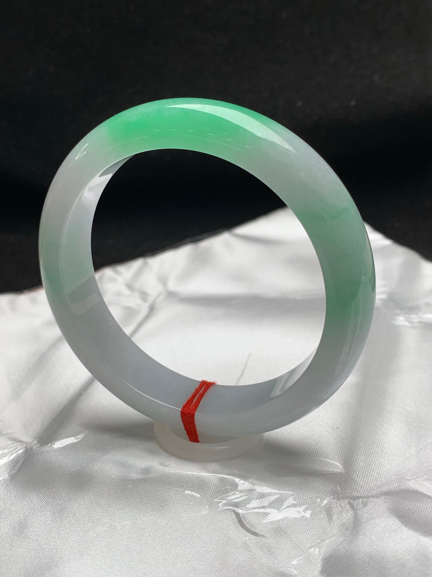 620402,58.8圈口,细糯化飘绿正圈平安镯,白底飘阳绿,底子细腻有水