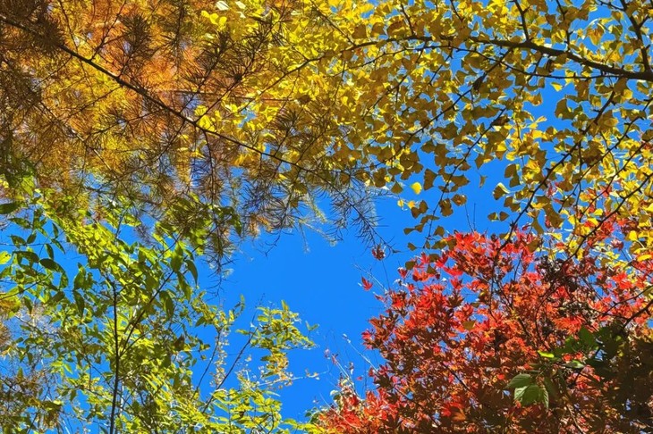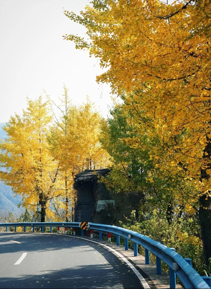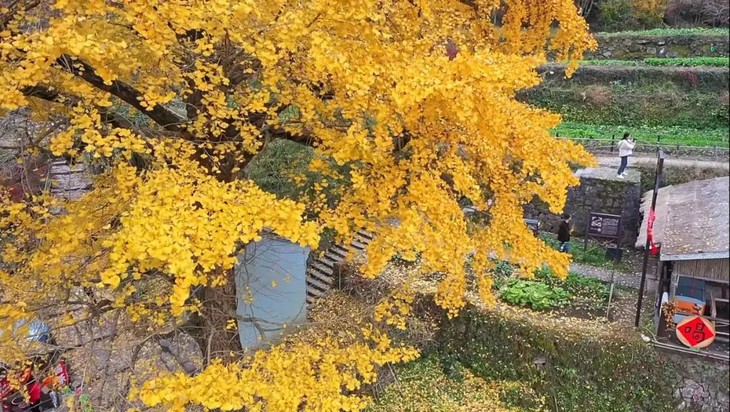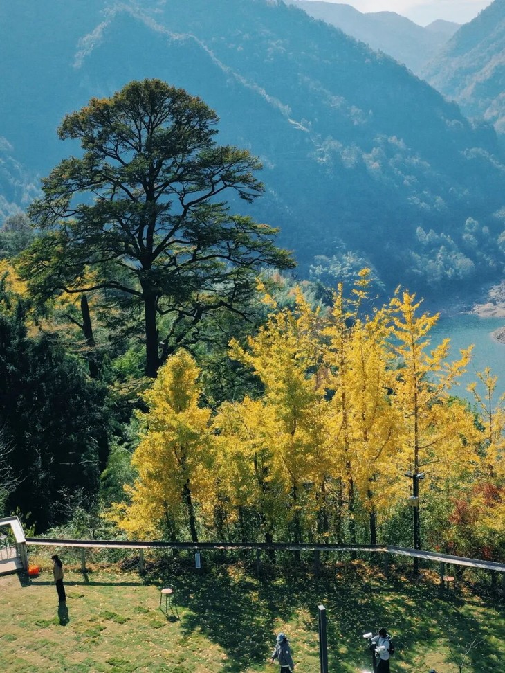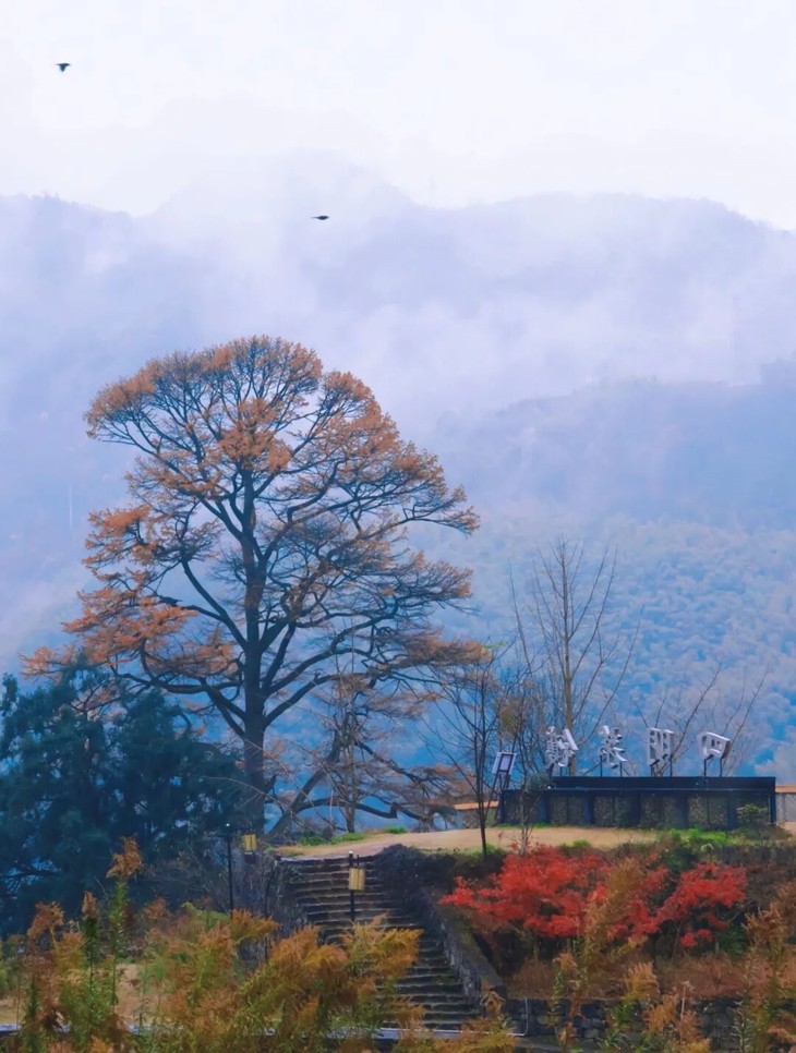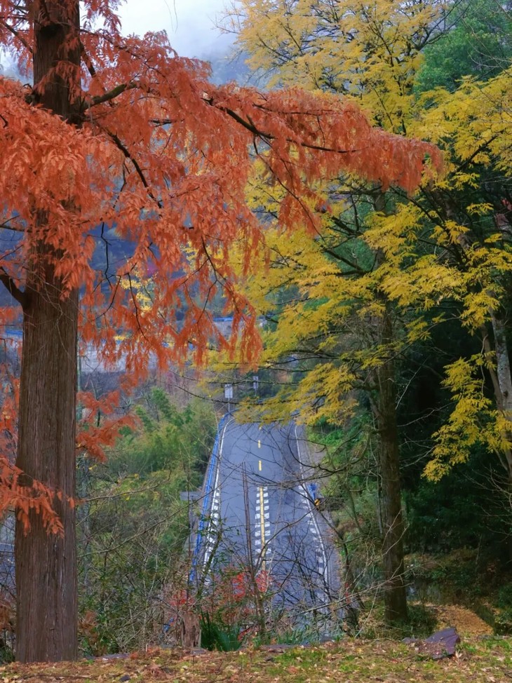 古老的枫香树染红山崖,银杏树洒下满地金黄,共同编织出一幅绚烂的油画。