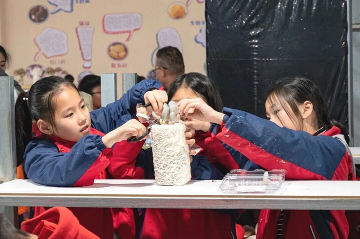 在这里娃可以直观地了解到,不同的菌菇对温度、湿度、光照和空气有不同的要求:有的需要恒温恒湿的静谧空间;有的则偏好凉爽通风。观察一排排整齐的菌包或菇床,了解科技如何模拟并优化自然的生长条件,让这些食用菌在洁净、可控的环境中,安静地积蓄风味与营养。