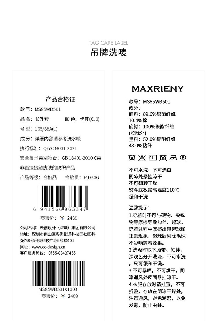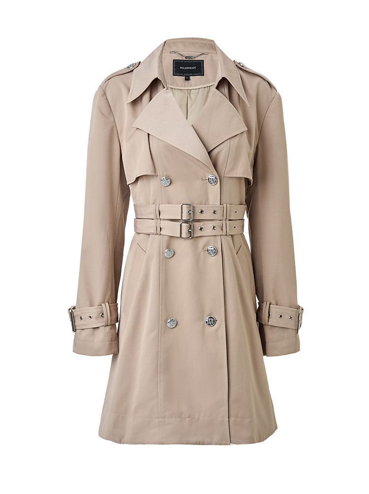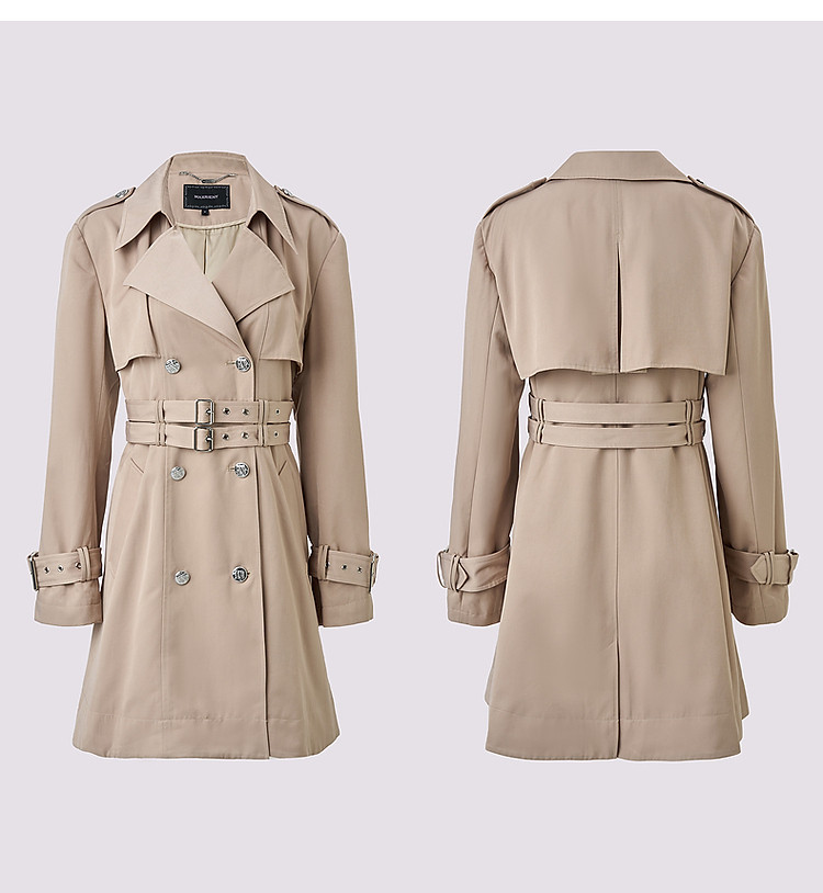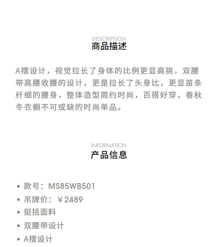 卡其双腰头高腰A摆风衣长裤冬美拉德穿搭(货号:MS85WB501X1001)