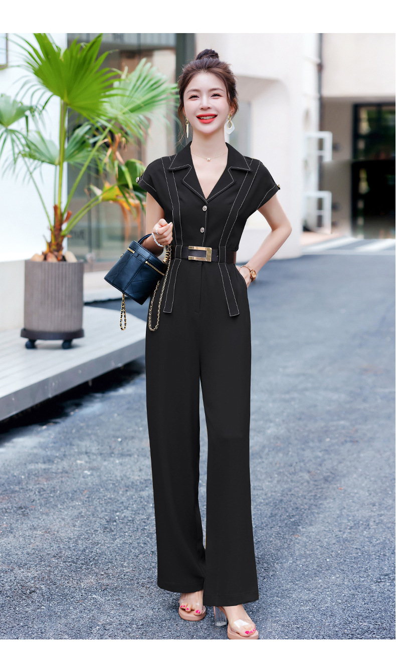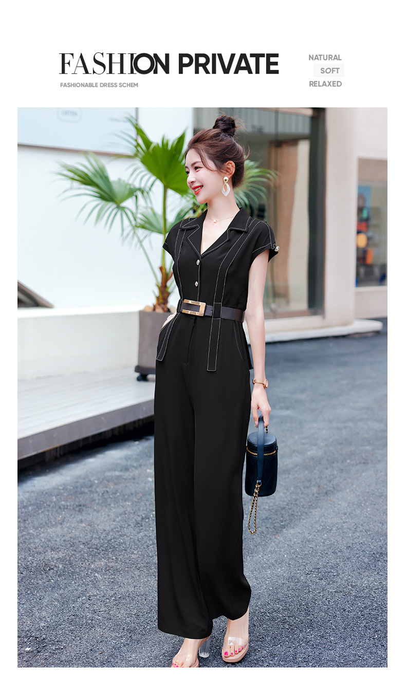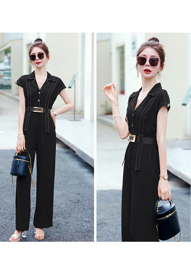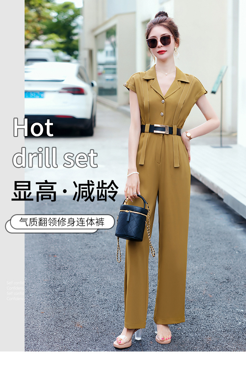 XS99322时髦连体裤女2025夏装新款百搭潮流简约气质修身连体裤配腰带韩版