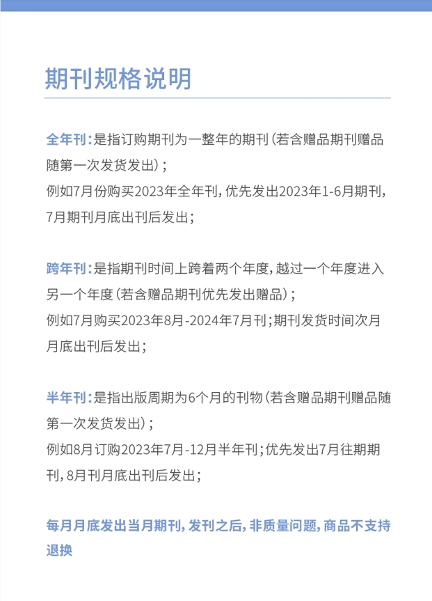 订阅年刊,不支持7天无理由退款哦。发刊之后,非质量问题,商品不再进行退换。
