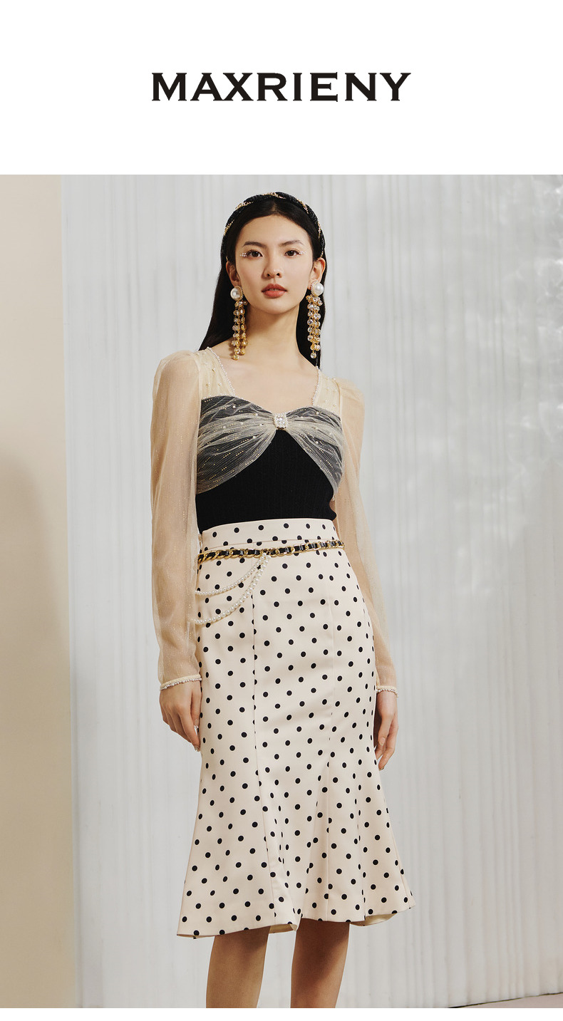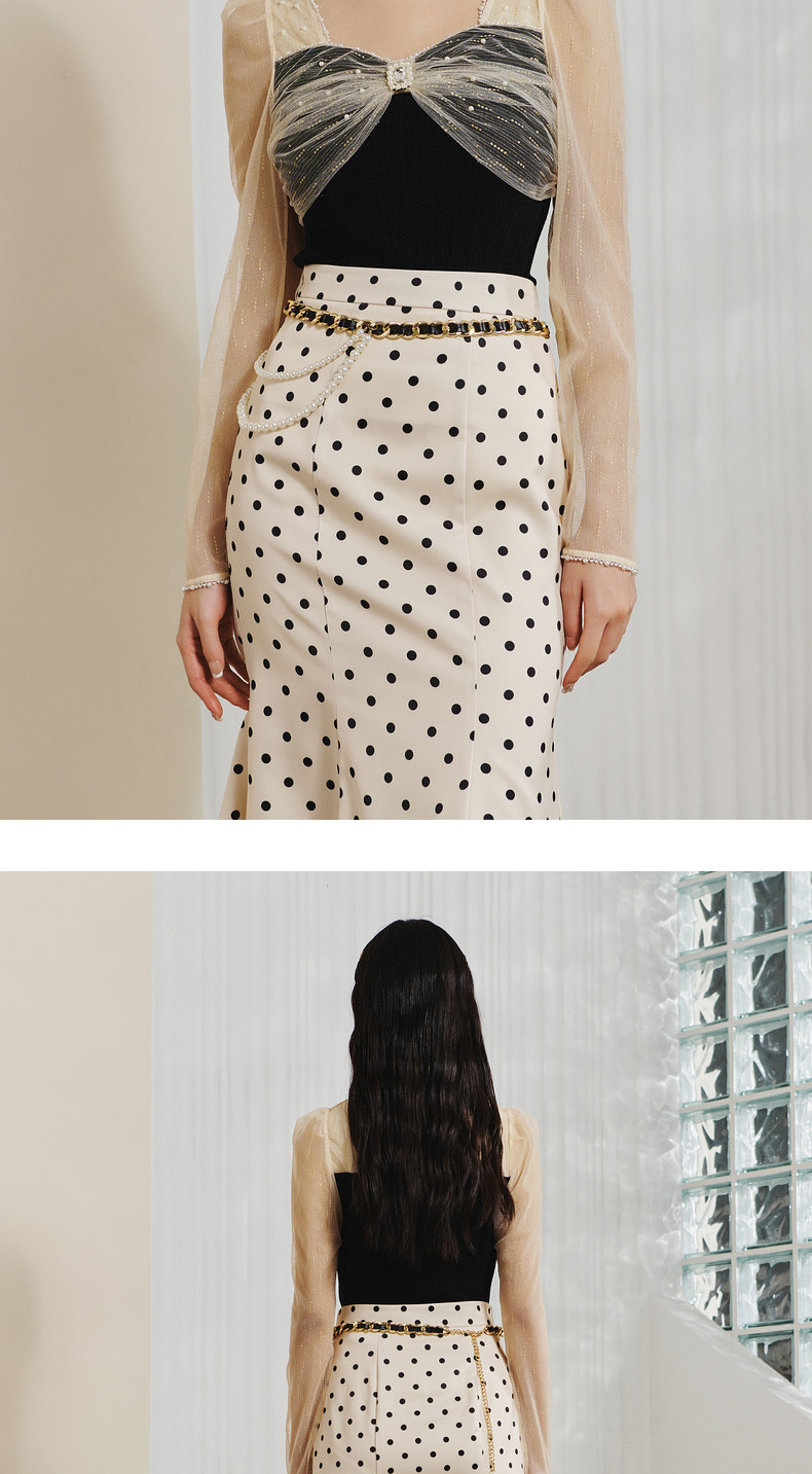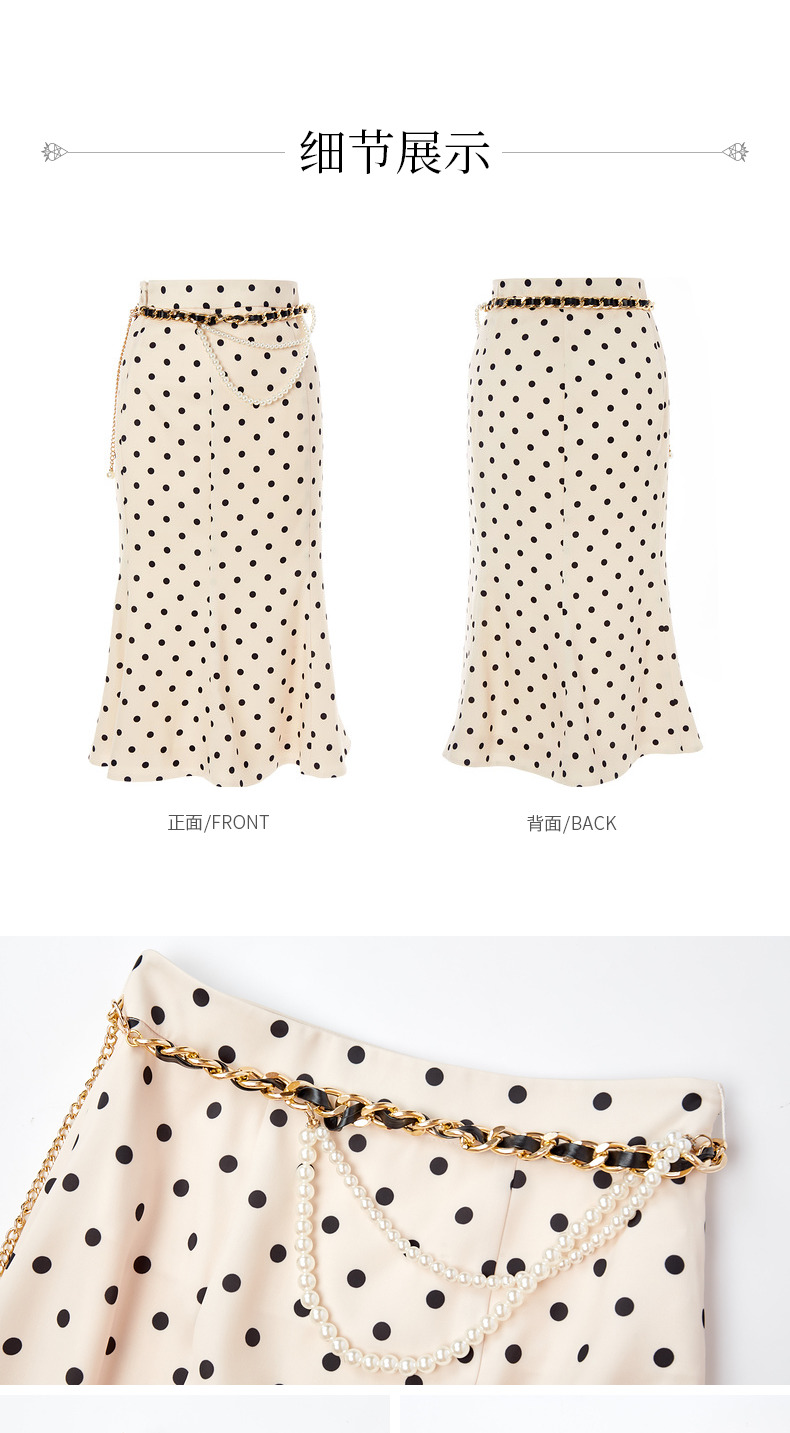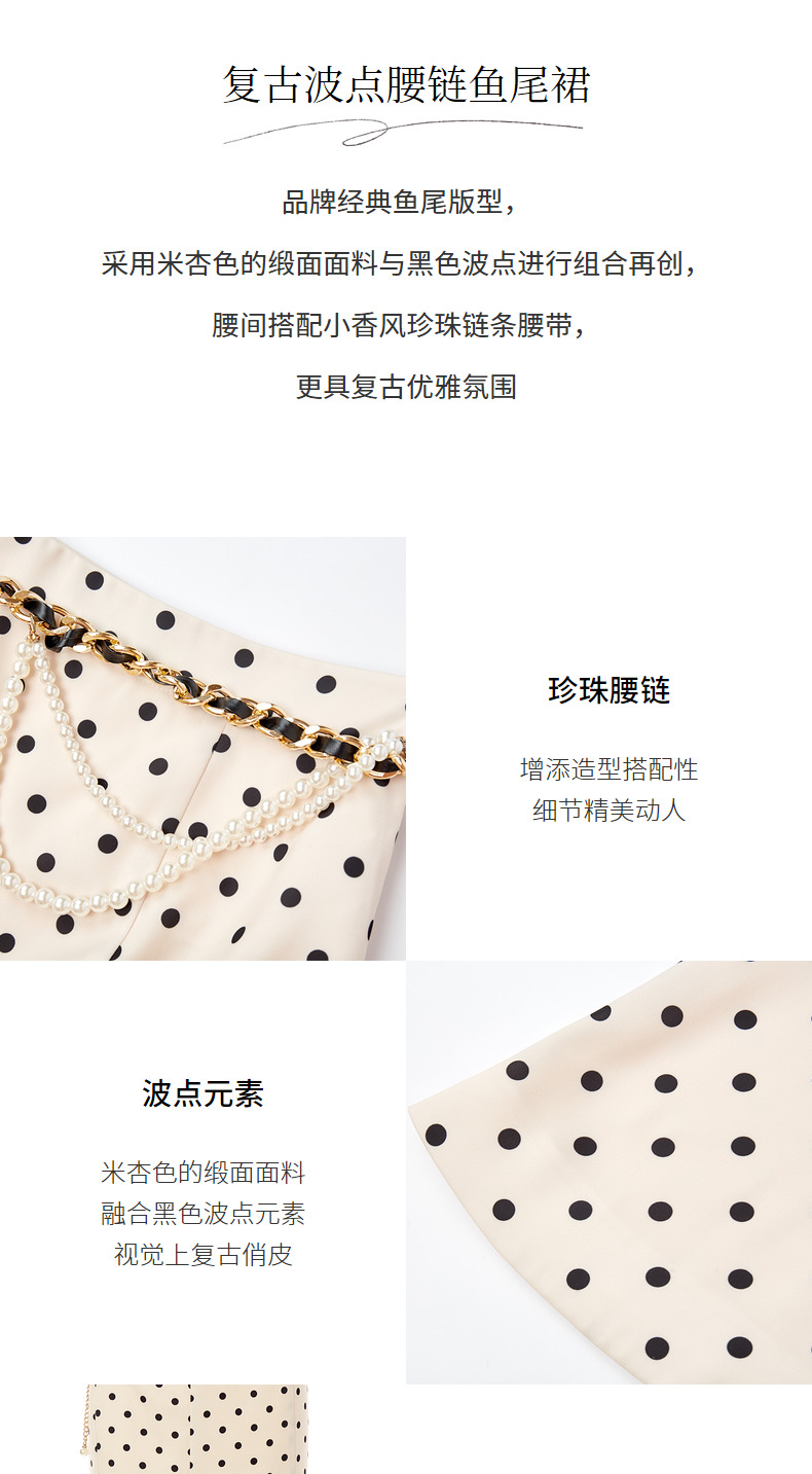 【波动心弦】MAXRIENY经典复古感波点腰链鱼尾裙高腰包臀半裙(货号:MC88SK008)