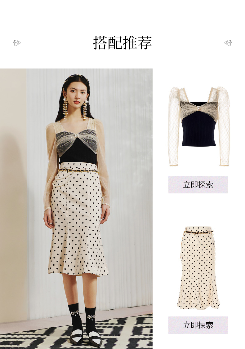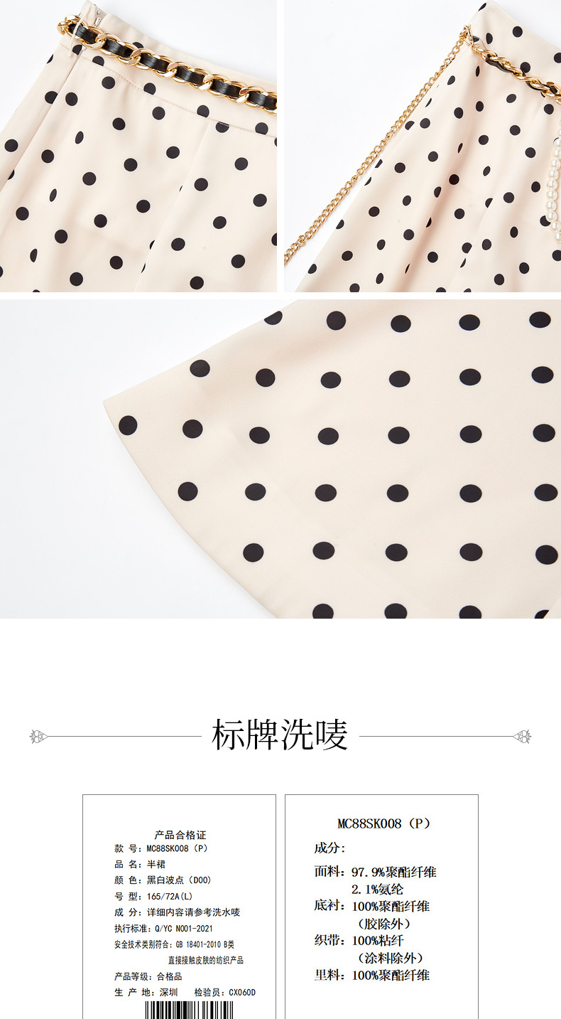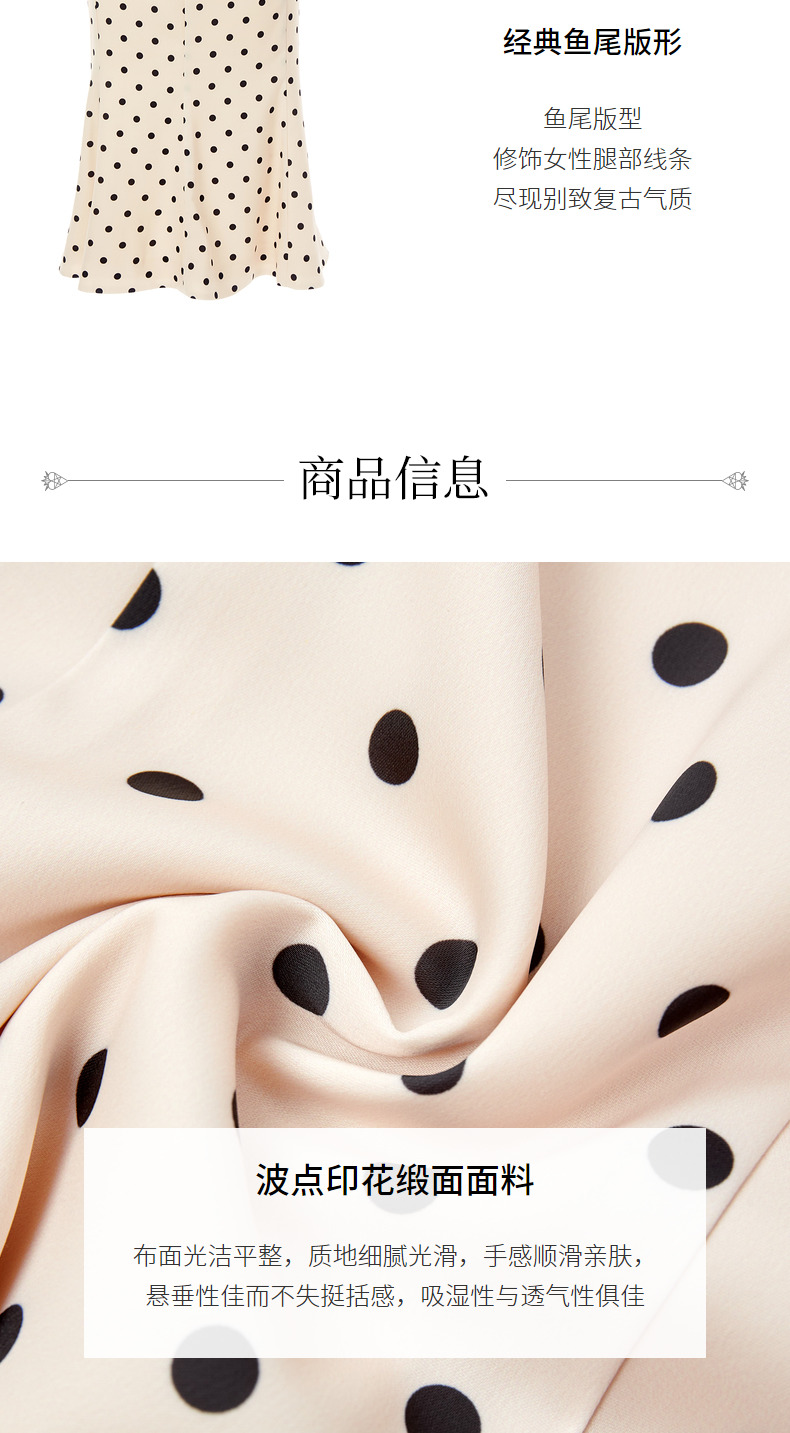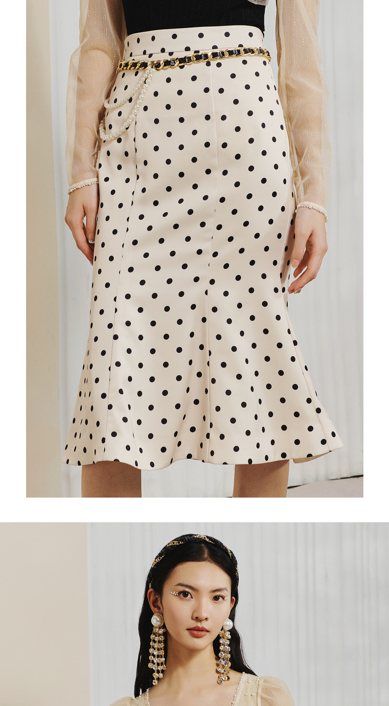 【波动心弦】MAXRIENY经典复古感波点腰链鱼尾裙高腰包臀半裙(货号:MC88SK008)