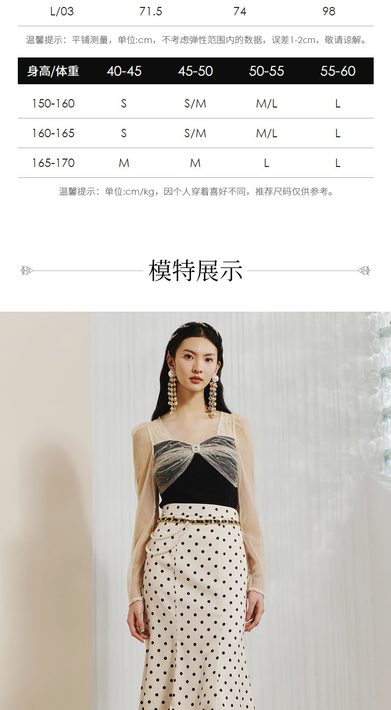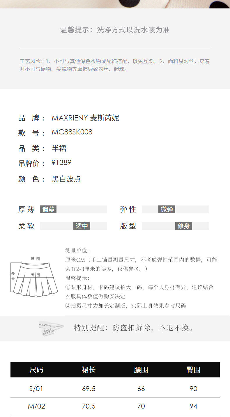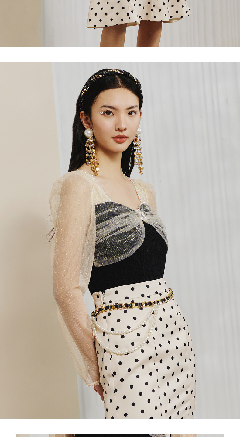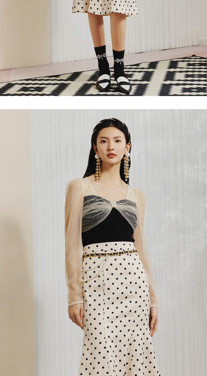 【波动心弦】MAXRIENY经典复古感波点腰链鱼尾裙高腰包臀半裙(货号:MC88SK008)