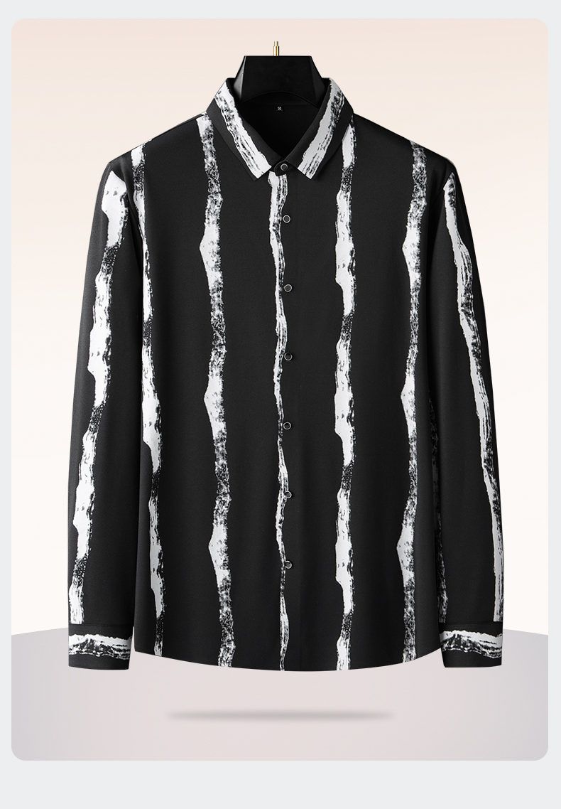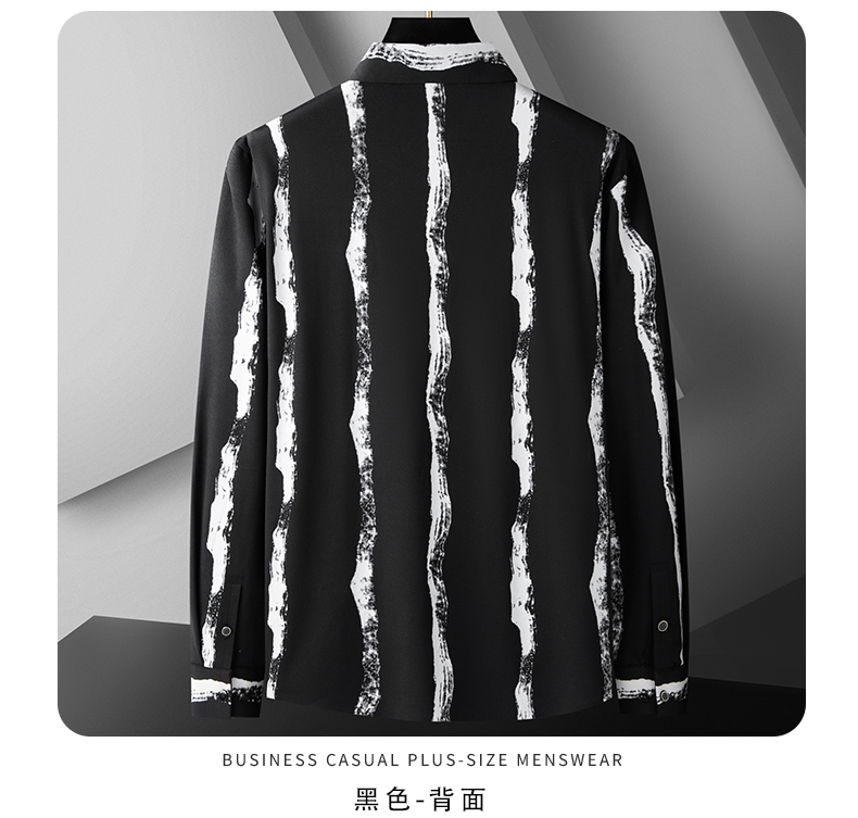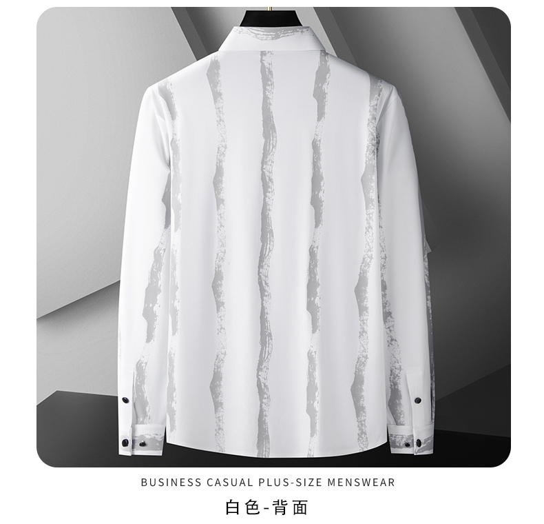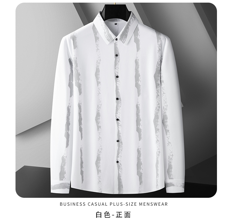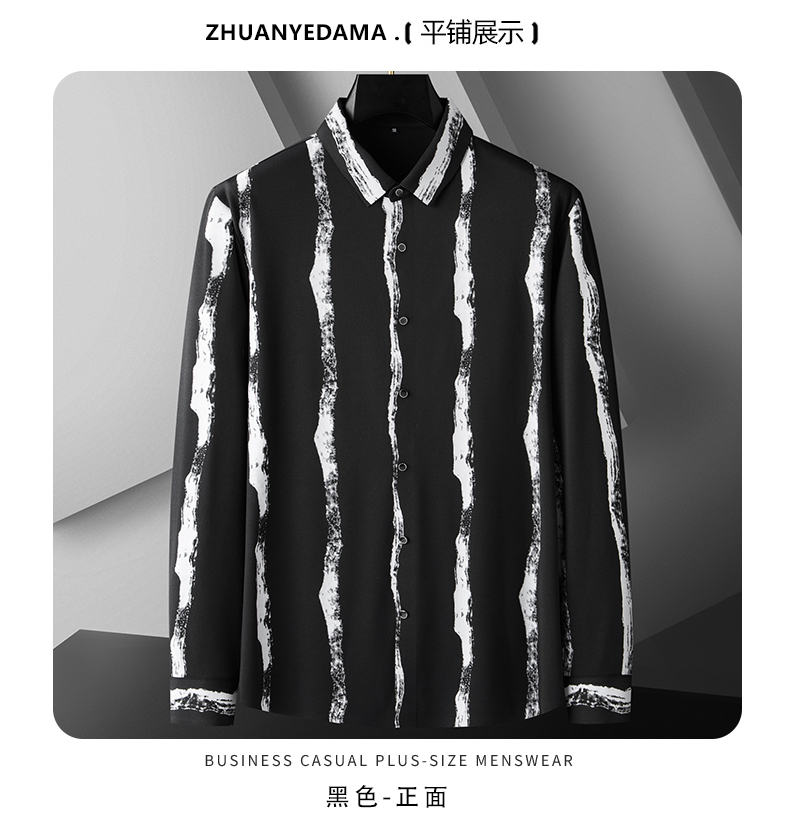【新款DDA】大依优型大码条纹长袖衬衫花衬衫弹力加肥加大透气上衣男装垂感休闲