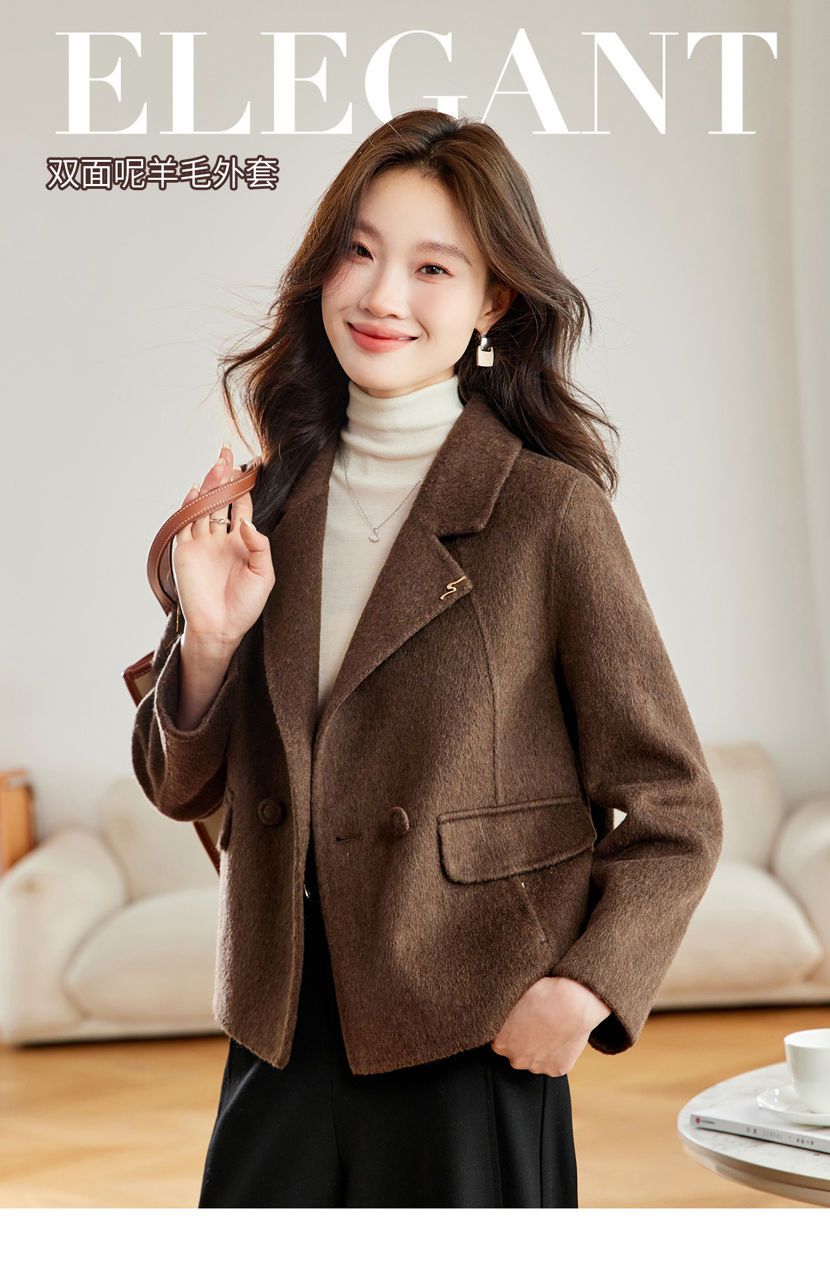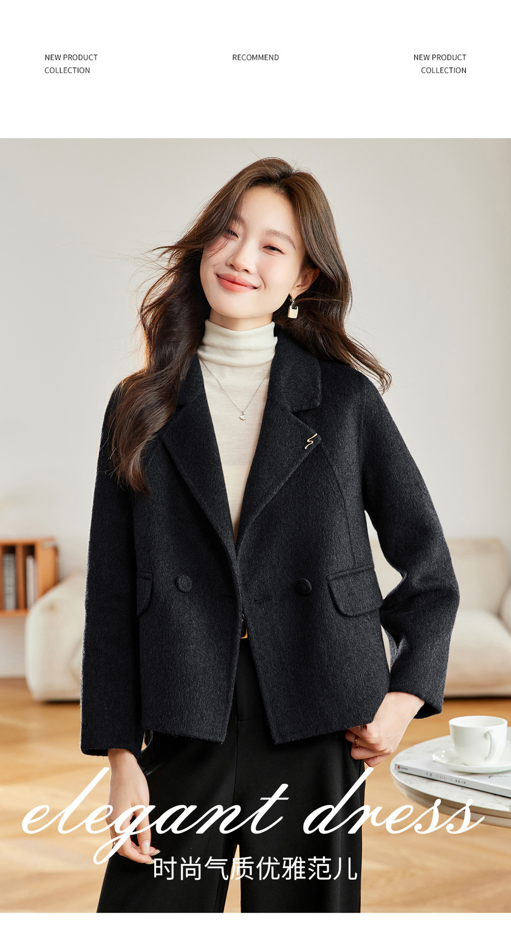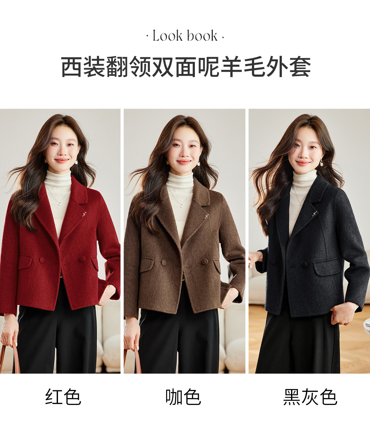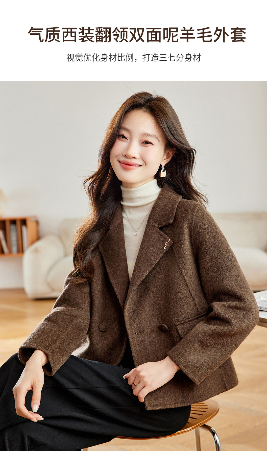 双面呢子大衣短款,西装领通勤简约气质减龄毛呢外套HR-SHIY2612
