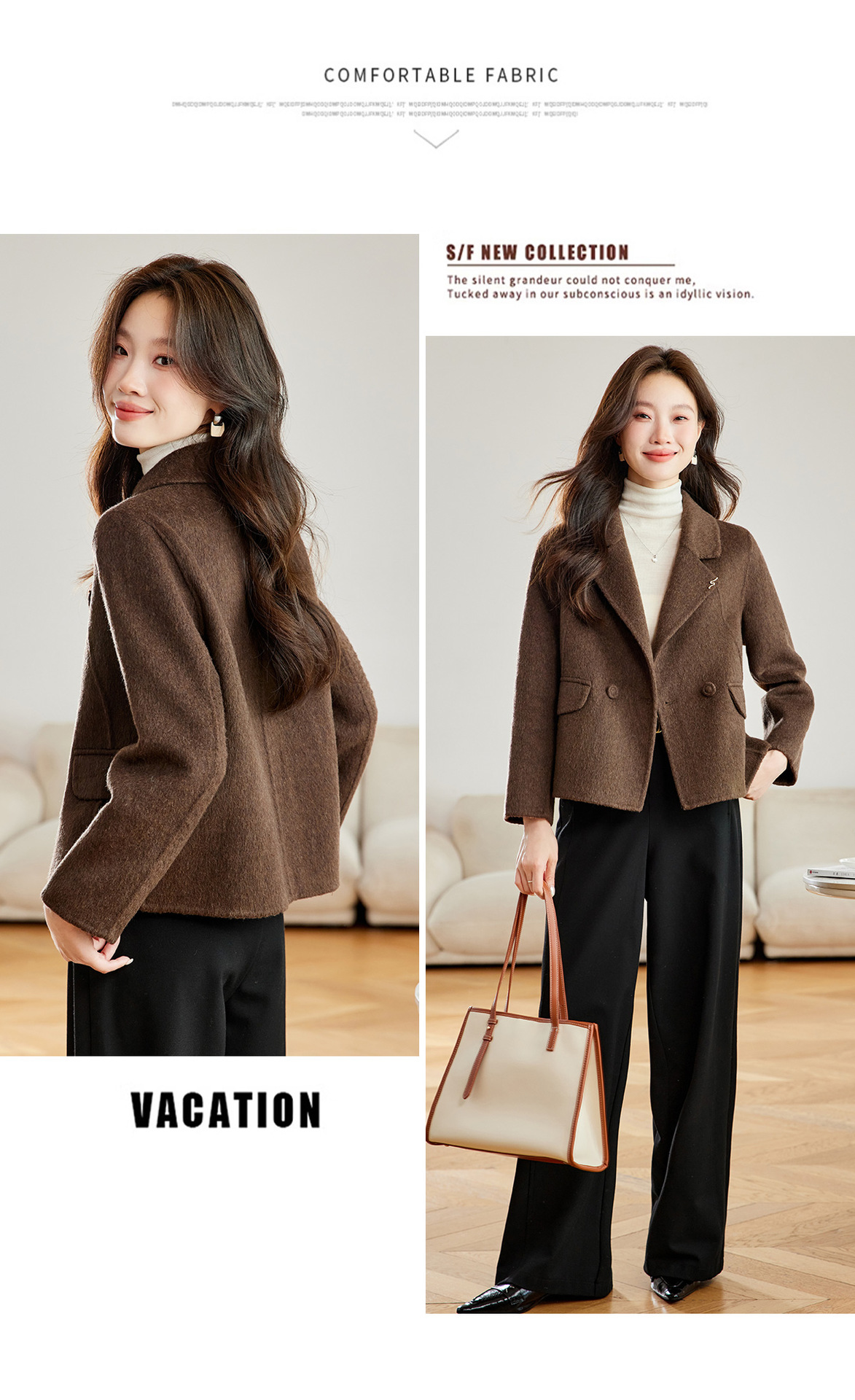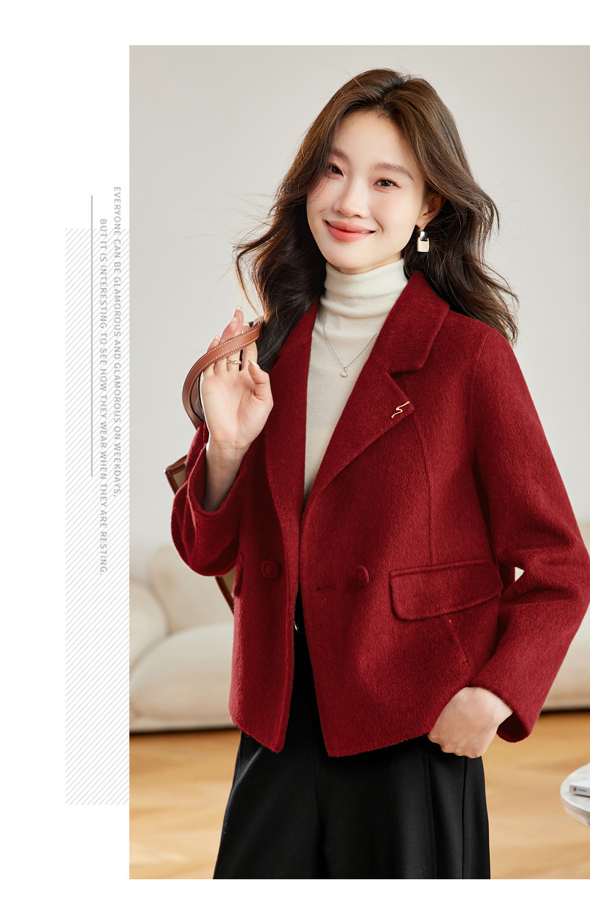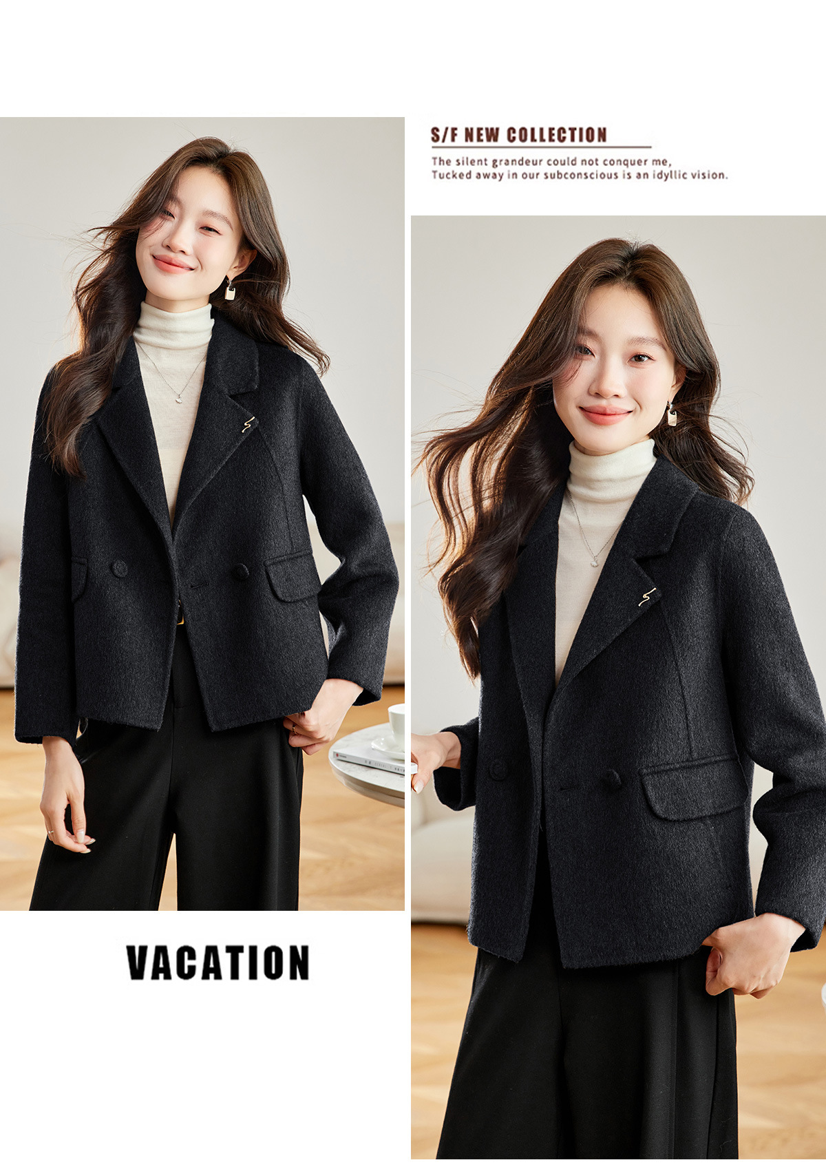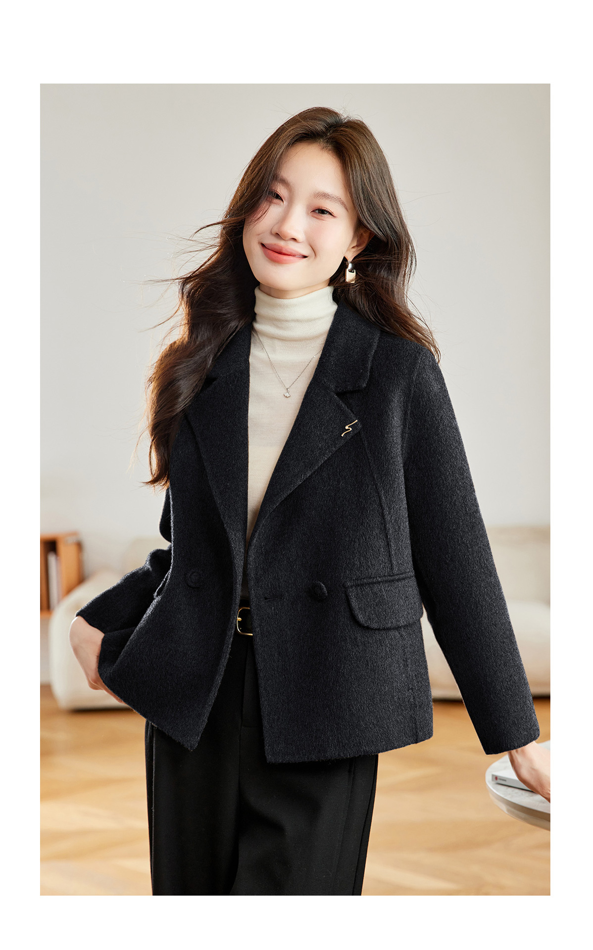 双面呢子大衣短款,西装领通勤简约气质减龄毛呢外套HR-SHIY2612