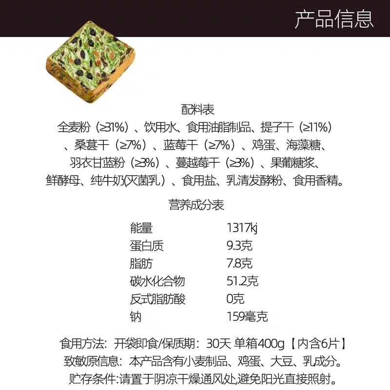 【上新】七年五季星空蓝莓吐司 厚切营养代餐面包