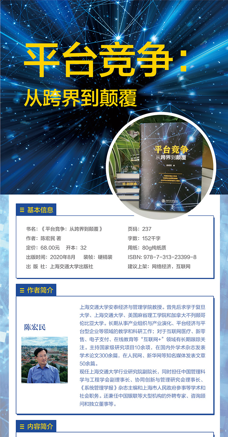 平台竞争:从跨界到颠覆 9787313233998 陈宏民 网络经济 互联网 新五力