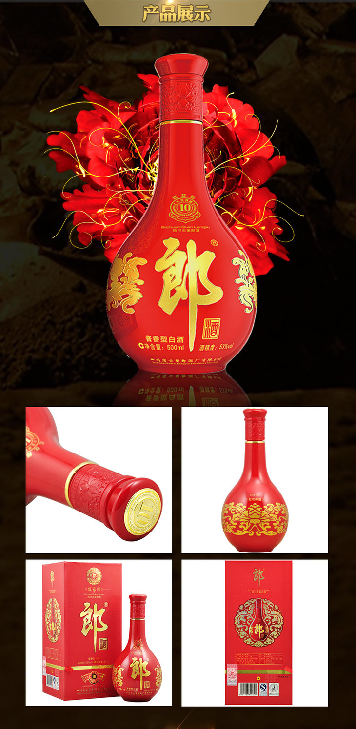 【推荐】郎酒 红花郎十(10) 陈酿 53度 单瓶装白酒 500ml 酱香型(新老包装随机发货)