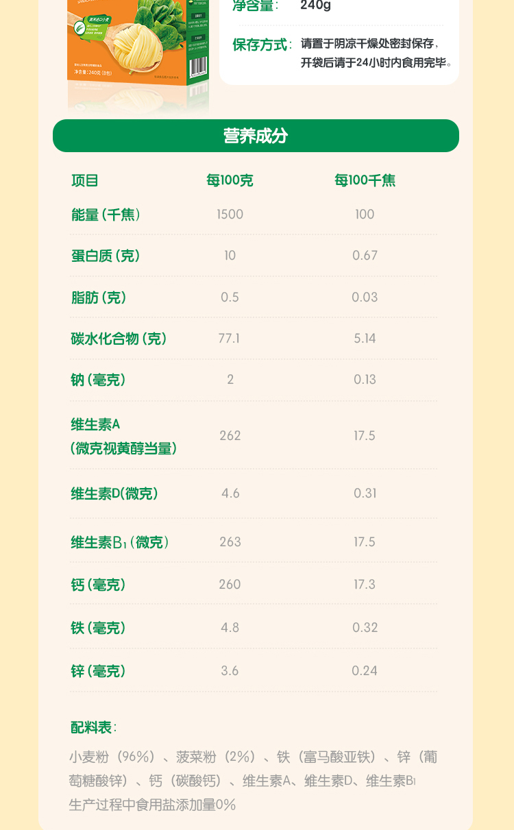 贝斯美婴幼儿菠菜面条240g