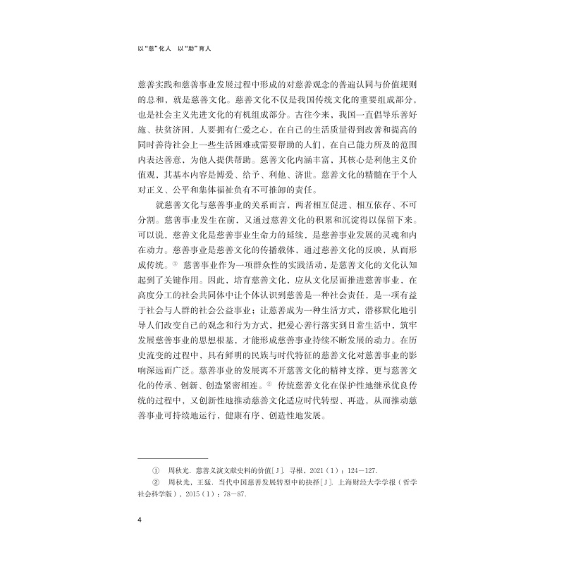 本书为浙江省哲学社会科学规划课题研究成果。人人慈善是现代慈善的追求目标。校园慈善文化的建设通过理论与实践的推广,为大力推动社会主义和谐社会的建设做铺垫。高校贫困生资助是我国教育扶贫工作的重点领域,也是维护教育公平的关键。学生资助具有丰富的思想政治教育资源可供开发,对学生的行为、思想品德和社会发展有着巨大的影响。以文化人,以文育人,本书是基于“慈善”和“资助”的理论研究与探索,梳理相关的理论,并以个别学校为例进行了实践探索。