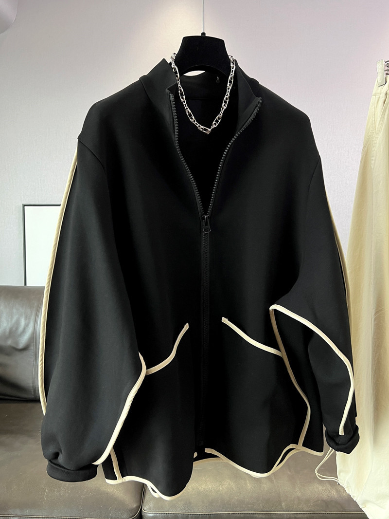 胖mm大码女装开衫时尚夹克外套女欧货设计遮肚显瘦立领卫衣250斤