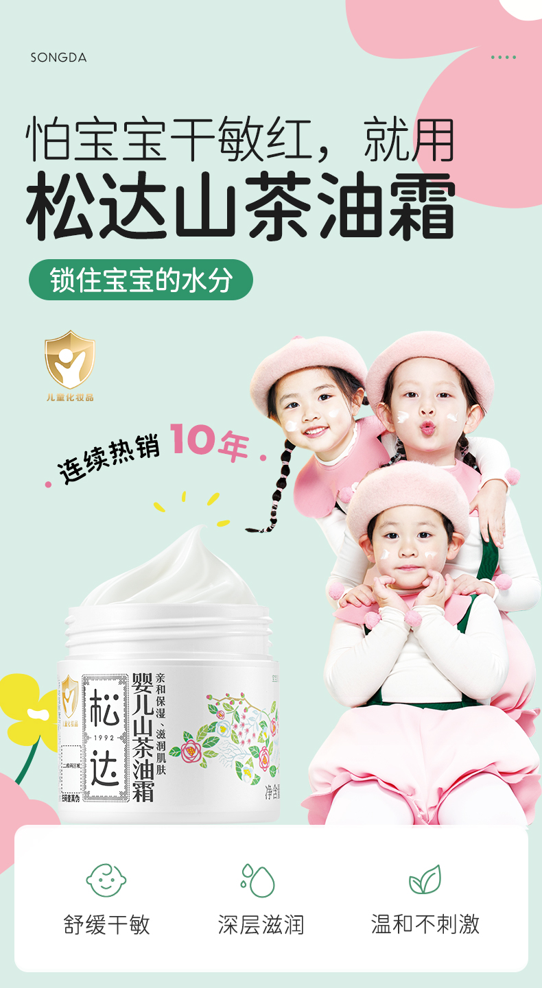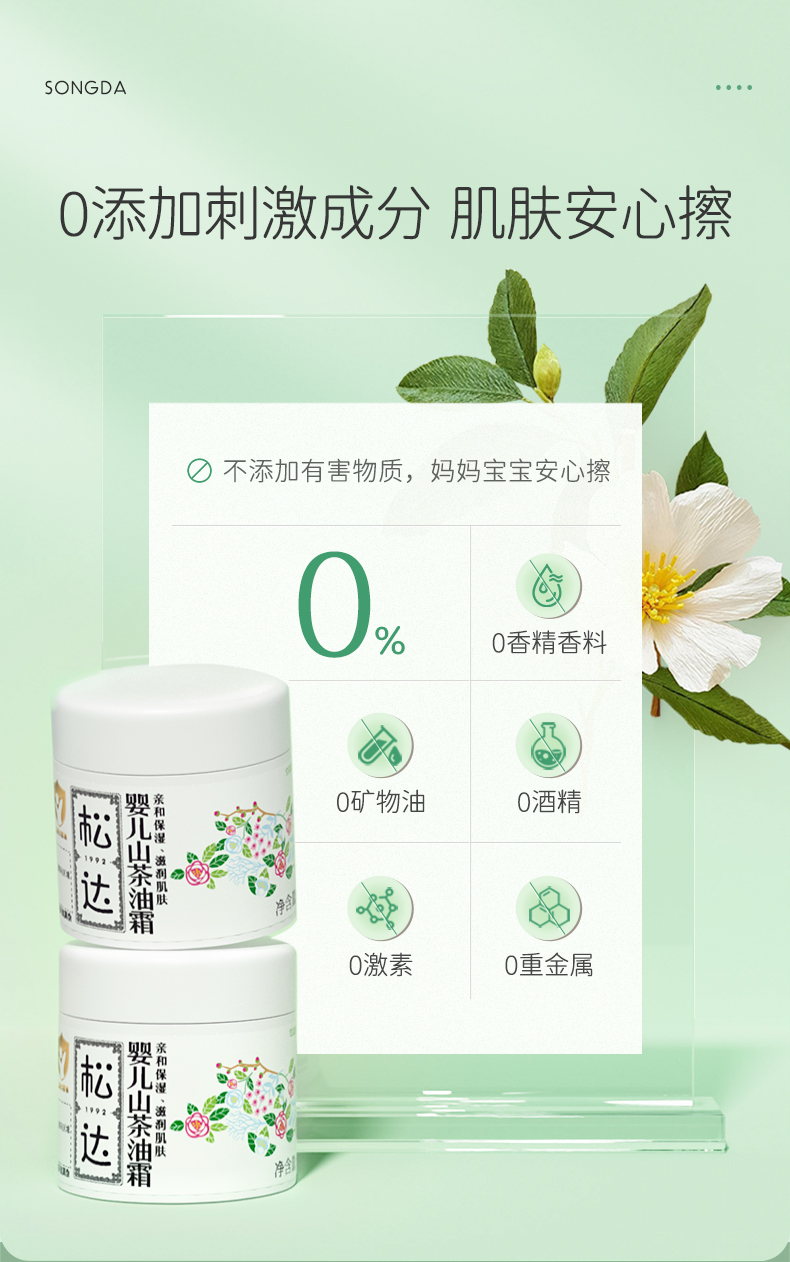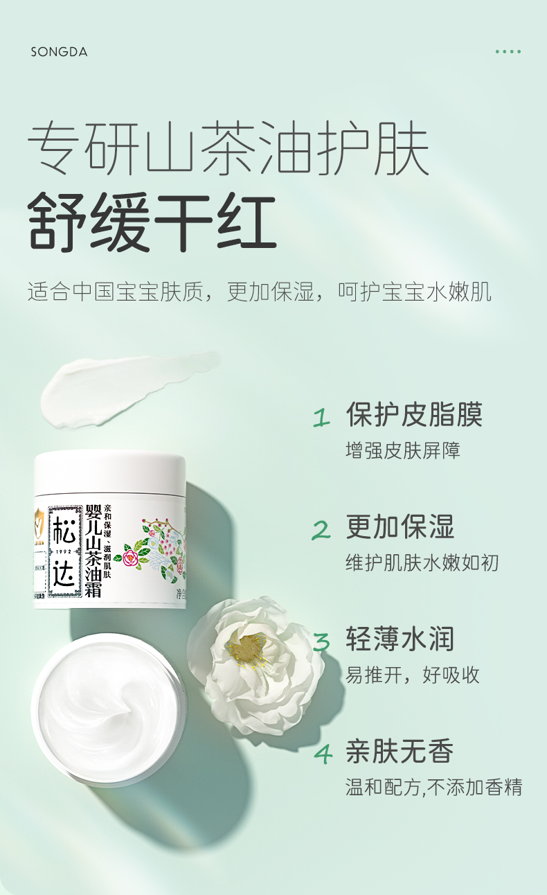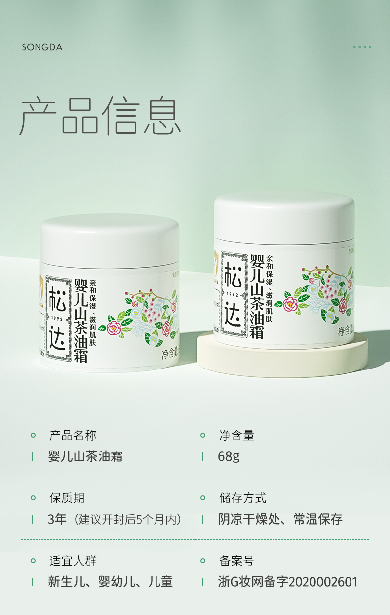 【品牌直发】松达婴儿护肤山茶油霜宝宝春夏润肤霜儿童面霜新生儿婴幼儿保湿霜【购2件送驱蚊液60ml一瓶】