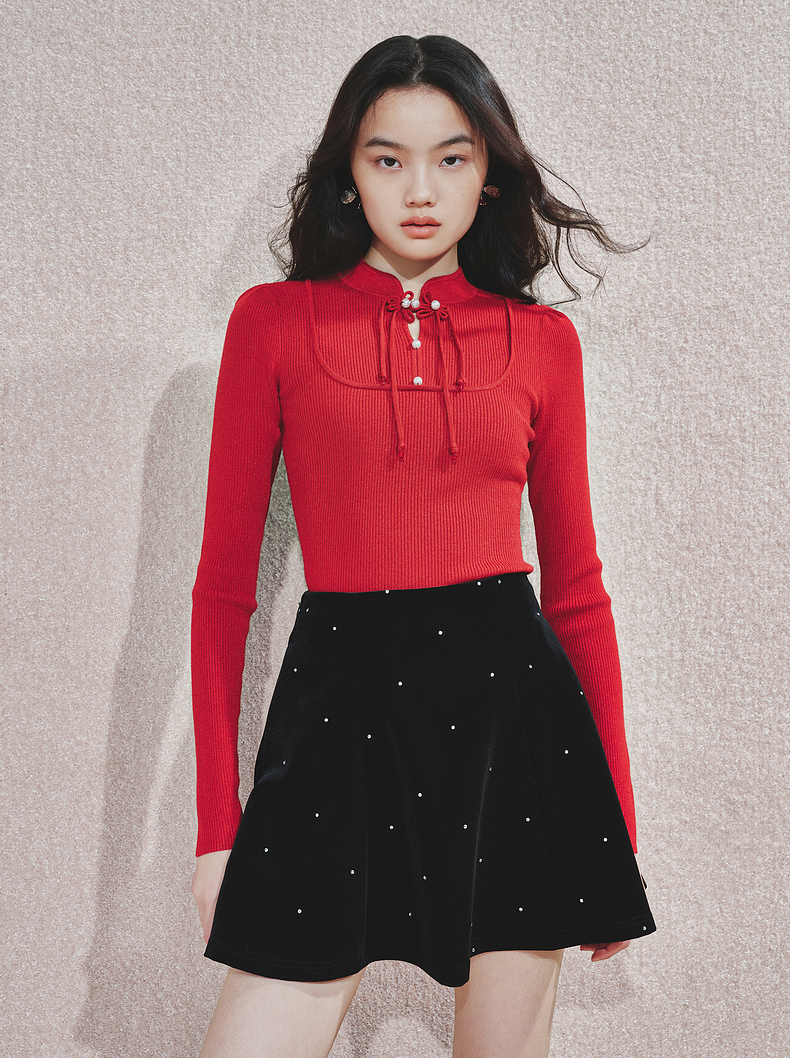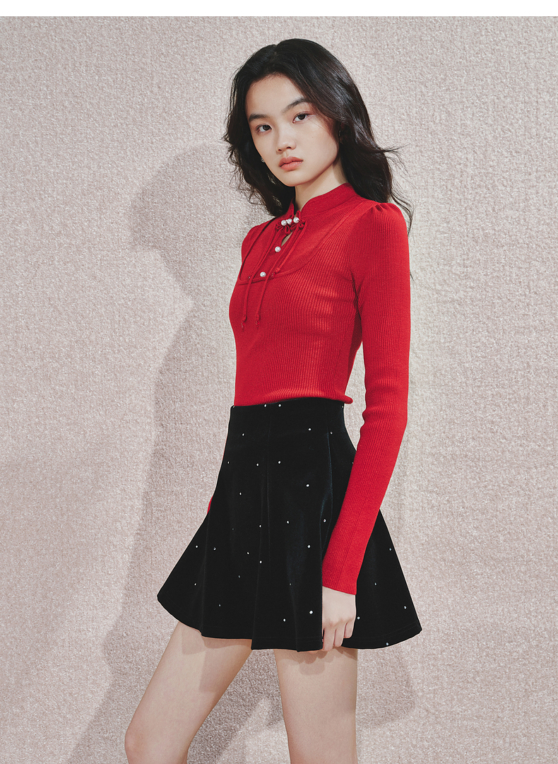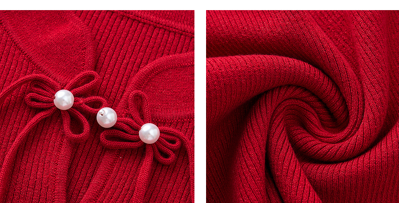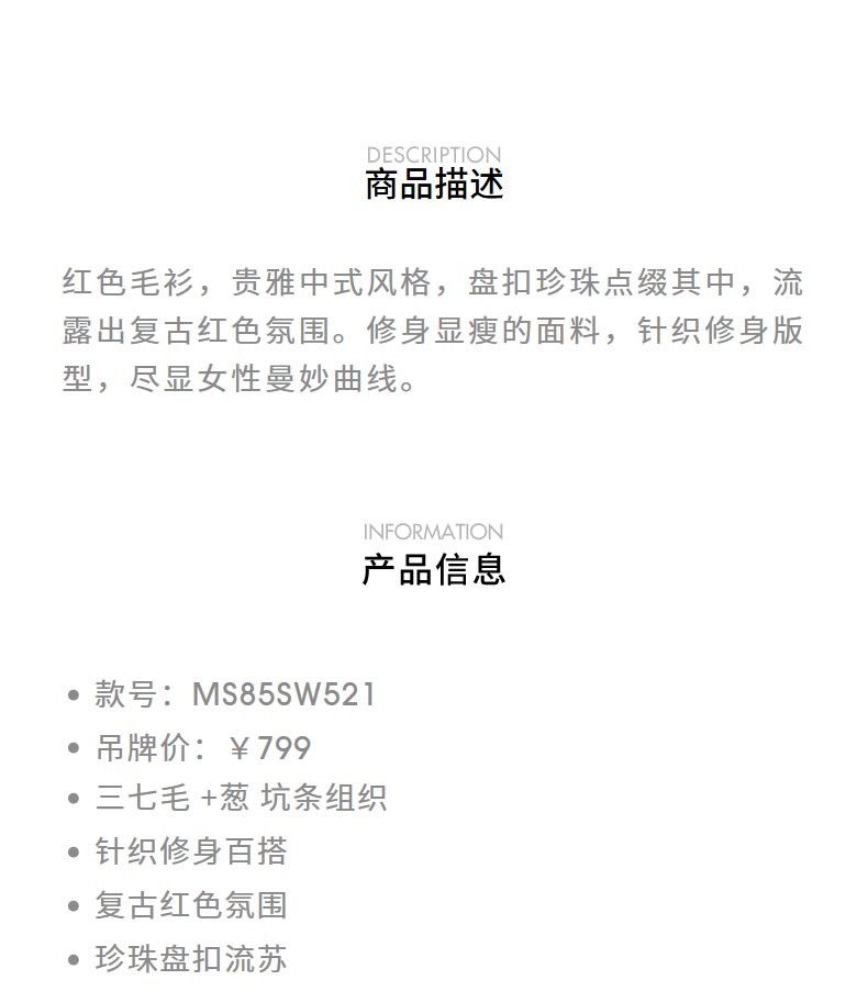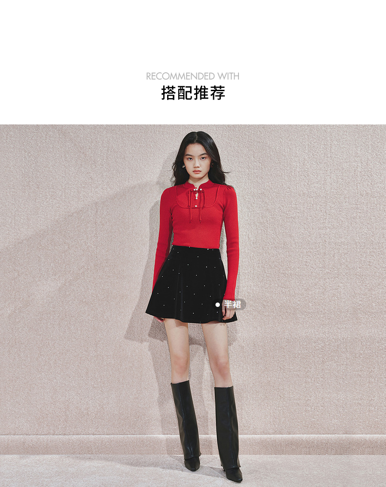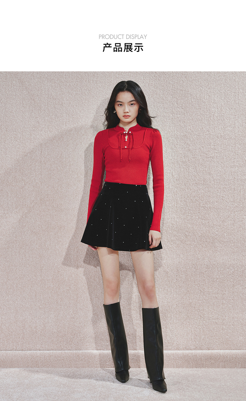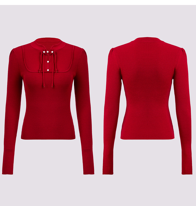 MAXRIENY2025秋冬新年红系列国风套头针织衫新中式显瘦修身上衣(货号:MS85SW521)
