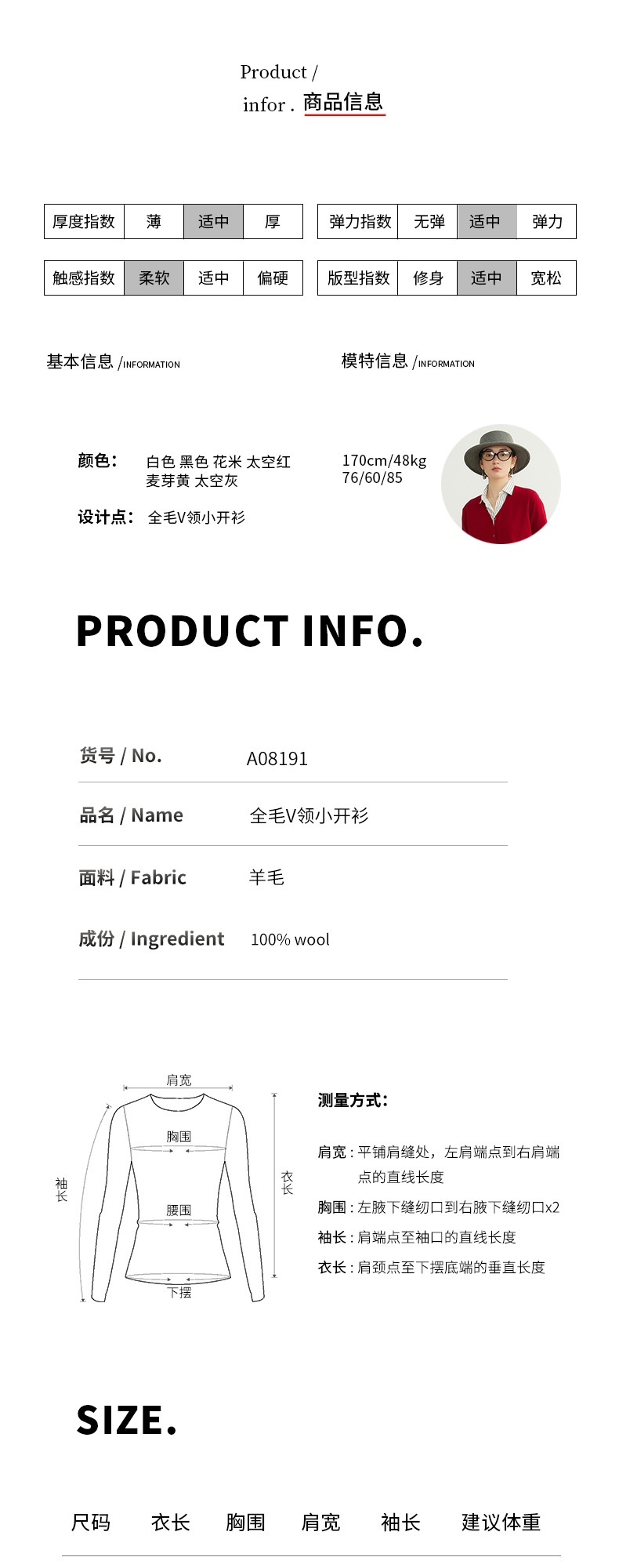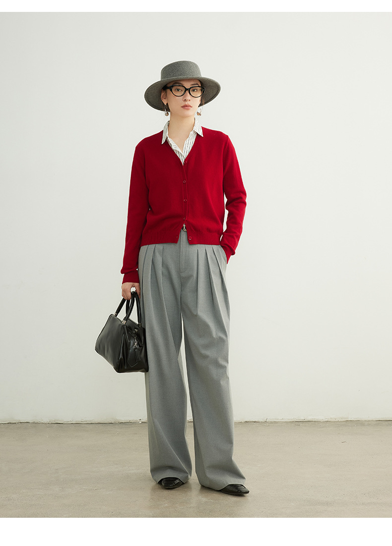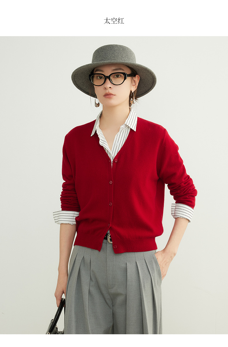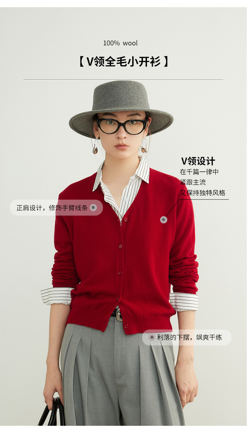 「自」全新升级【铂金会员192/天猫259/差价67】(95137)洛诗琳美利奴100羊毛针织开衫2025秋季气质V领显瘦短外套