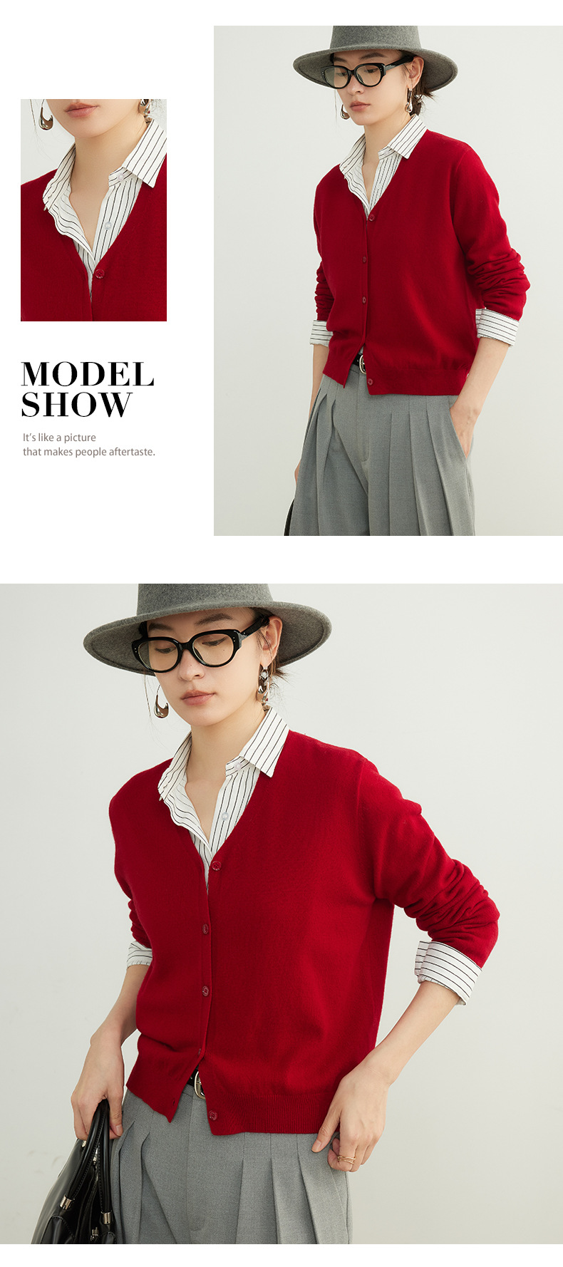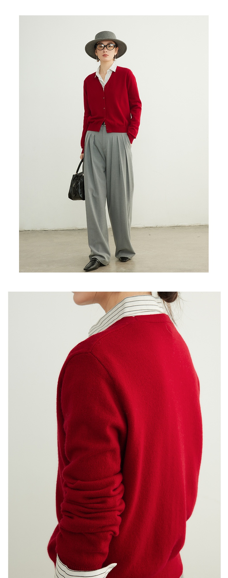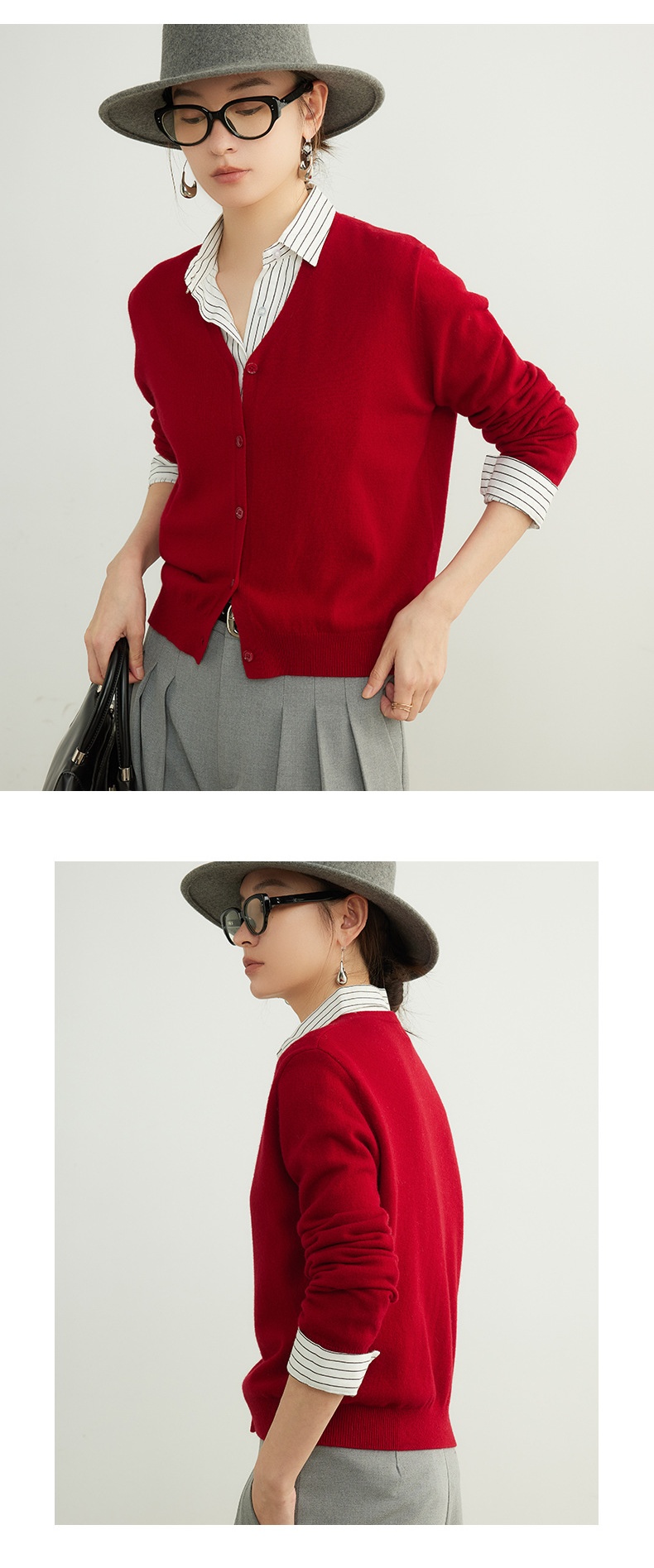 「自」全新升级【铂金会员192/天猫259/差价67】(95137)洛诗琳美利奴100羊毛针织开衫2025秋季气质V领显瘦短外套
