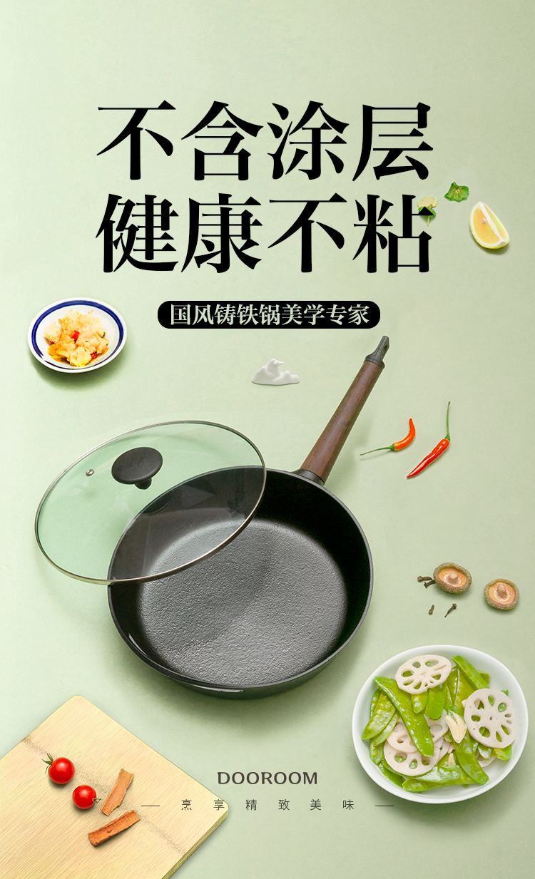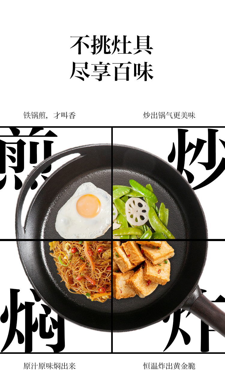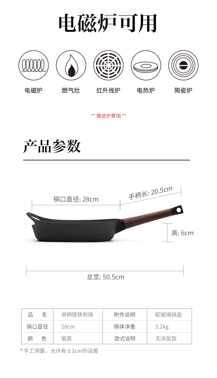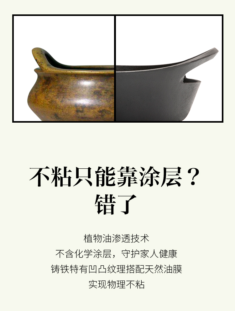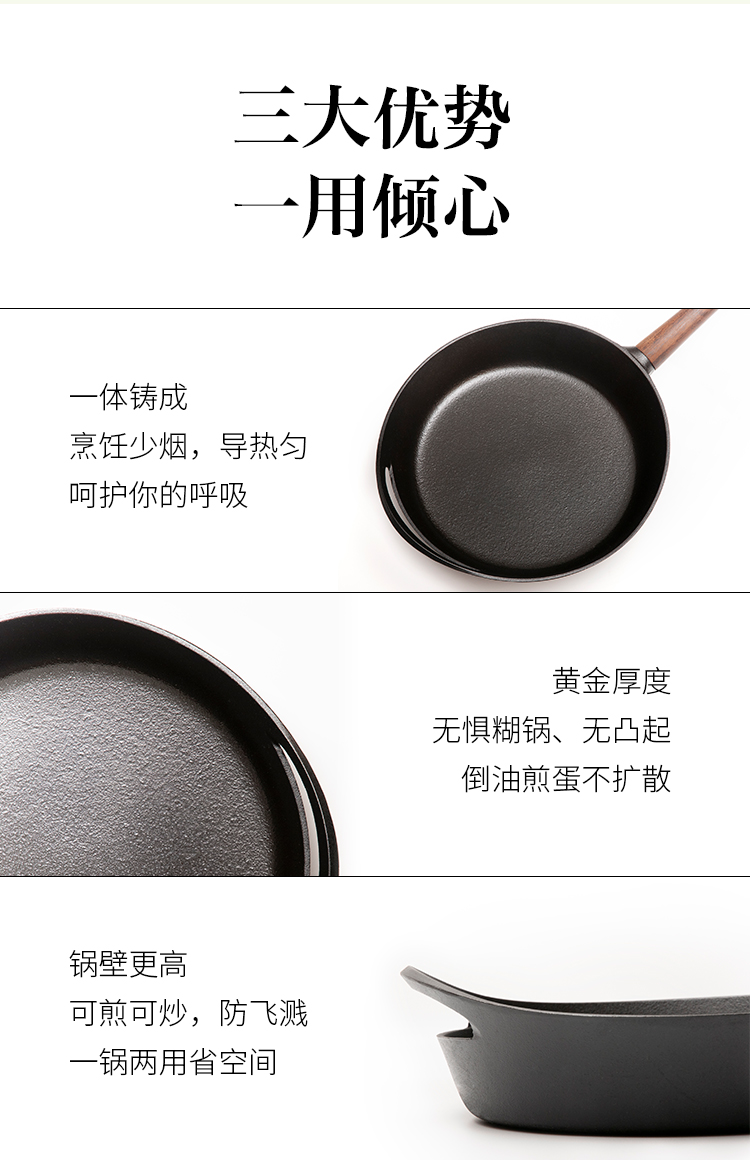 无涂层铸铁煎锅 | 28cm 锻黑 煎炒焖炸 电磁炉燃气灶通用 归禾器