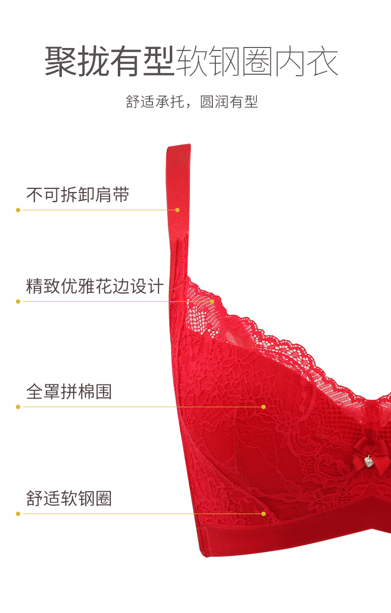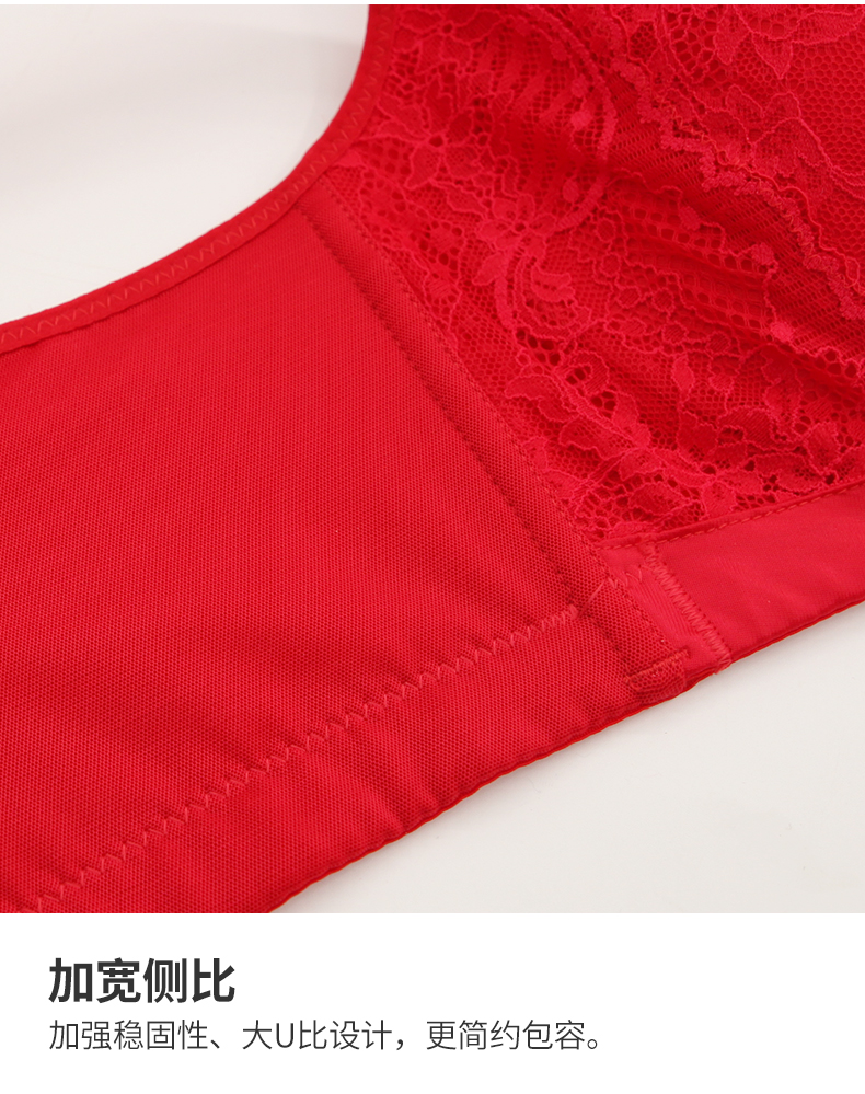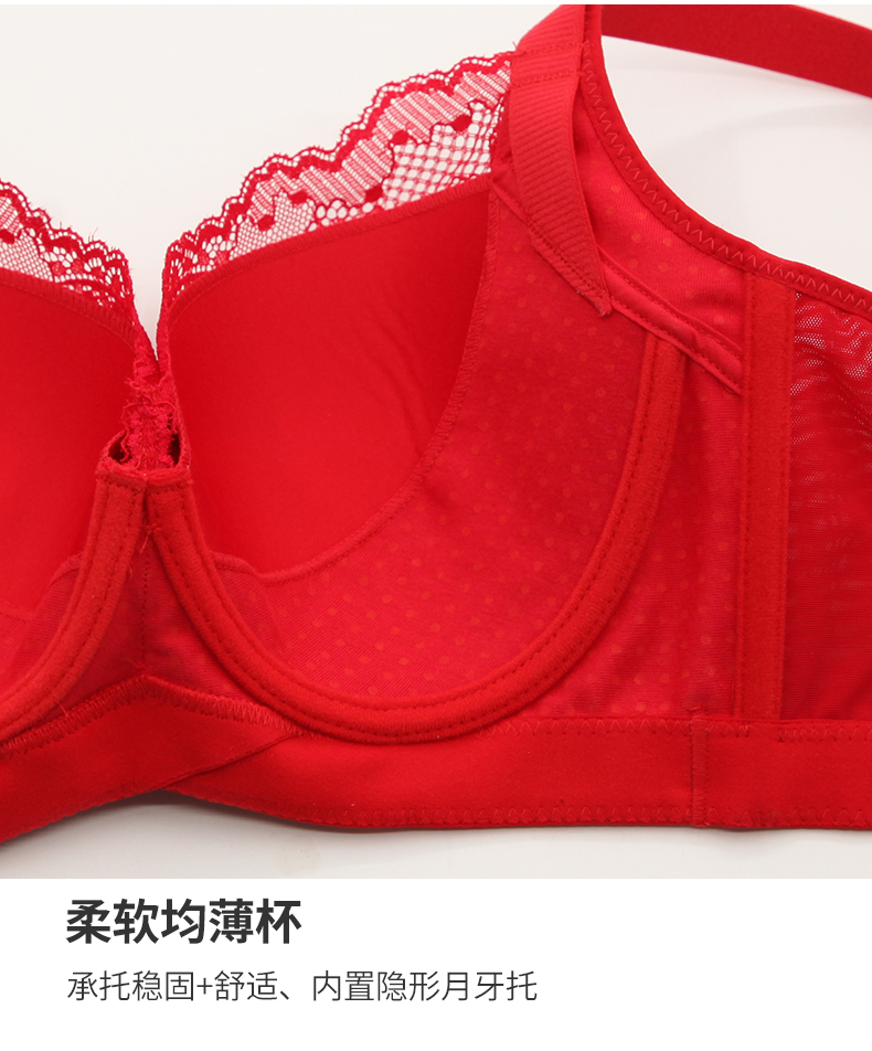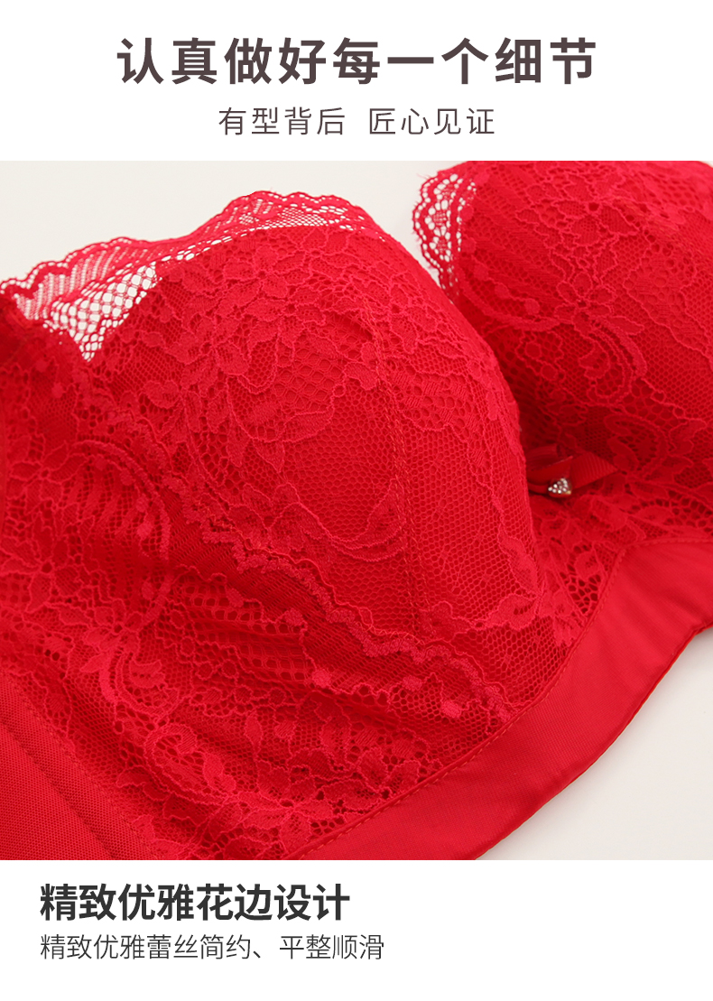 贝佳人新品厚红色内衣无钢圈胸衣聚拢调整型内衣女小胸显大文胸