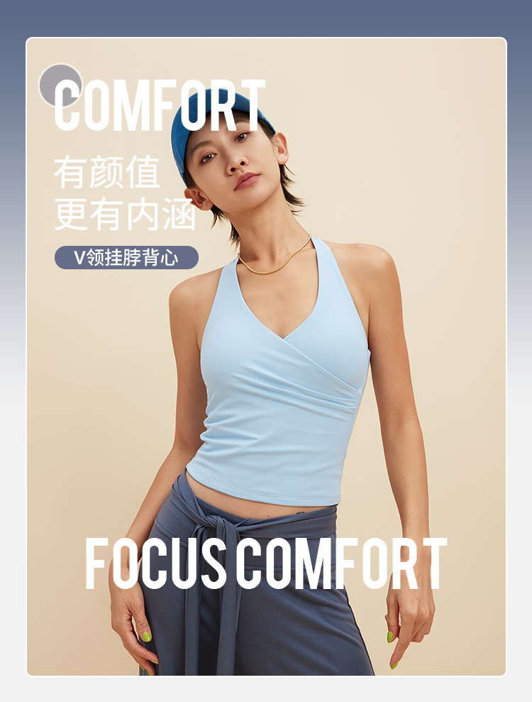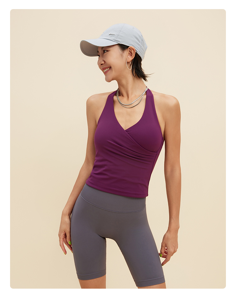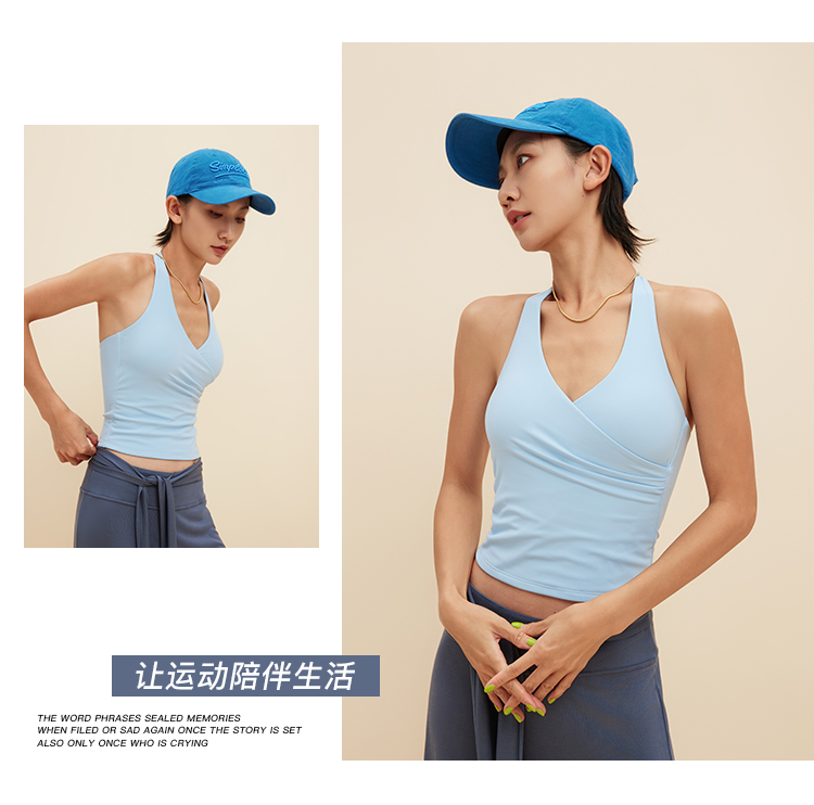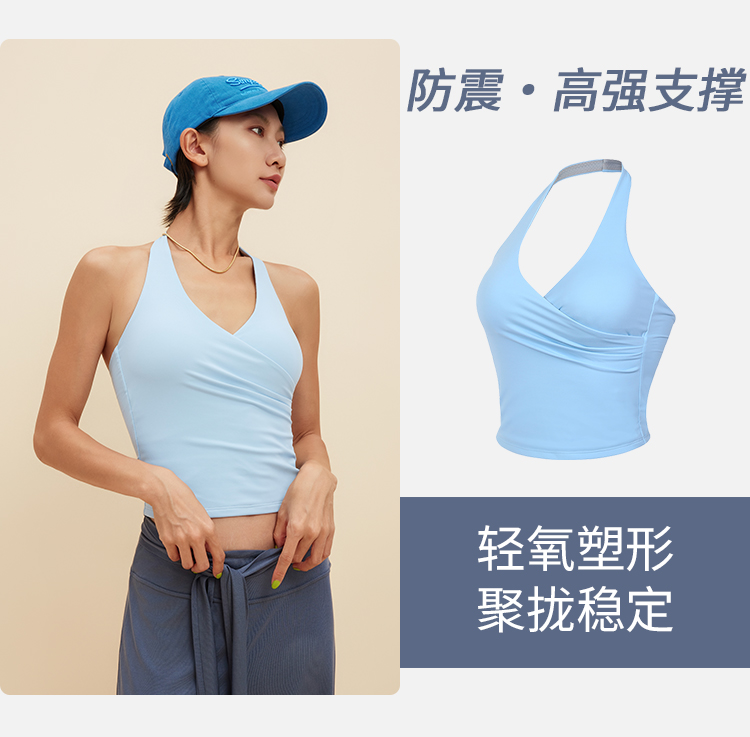跃牌【颜值有理】系列 挂脖瑜伽背心含胸垫V领运动健身服美背裸感瑜伽服上衣女YB1346+YD1217+YK015