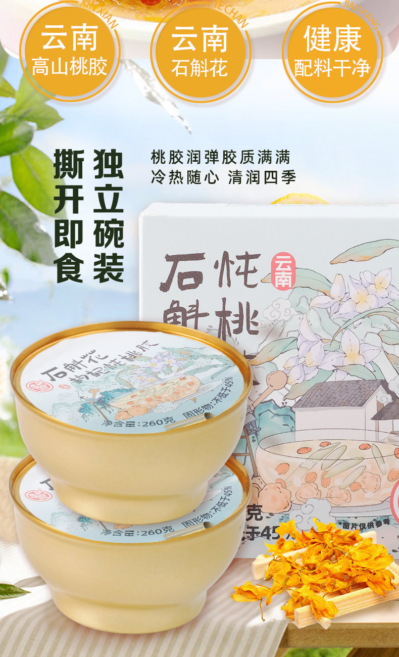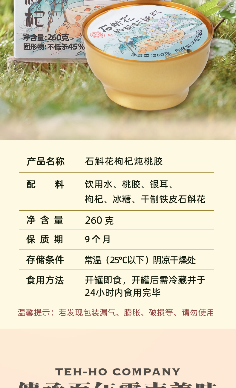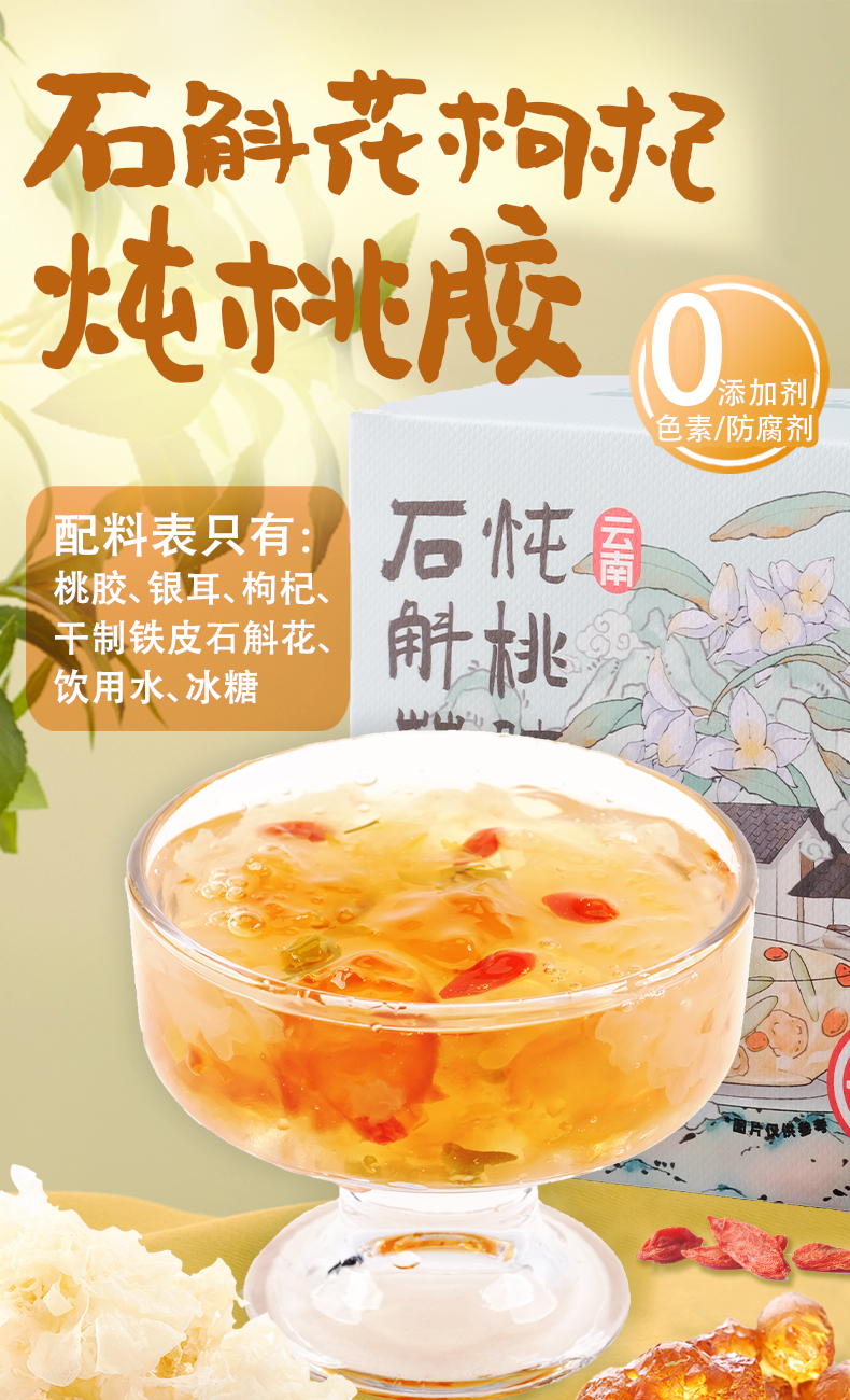 德和 260g石斛花枸杞炖桃胶 云南石斛花枸杞银耳炖桃胶早餐代餐鲜炖即食免煮 #零食