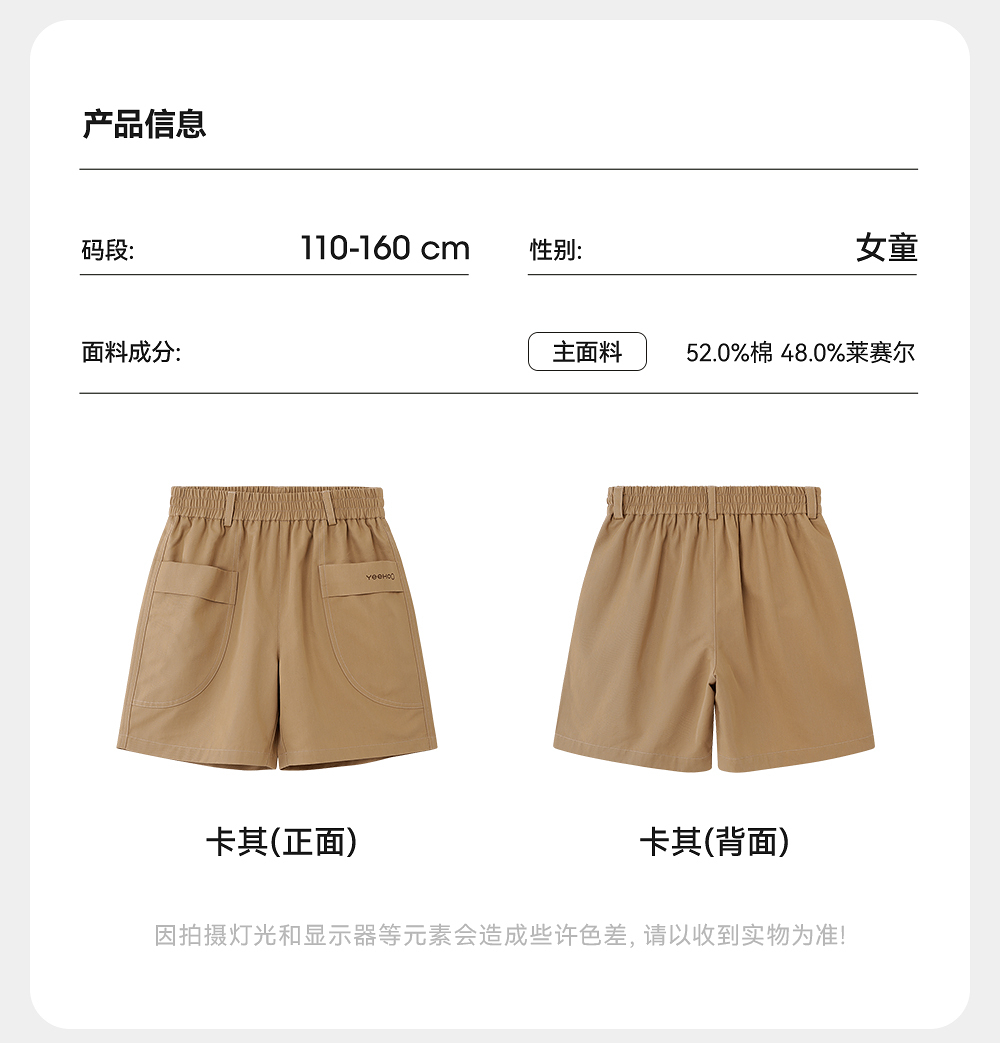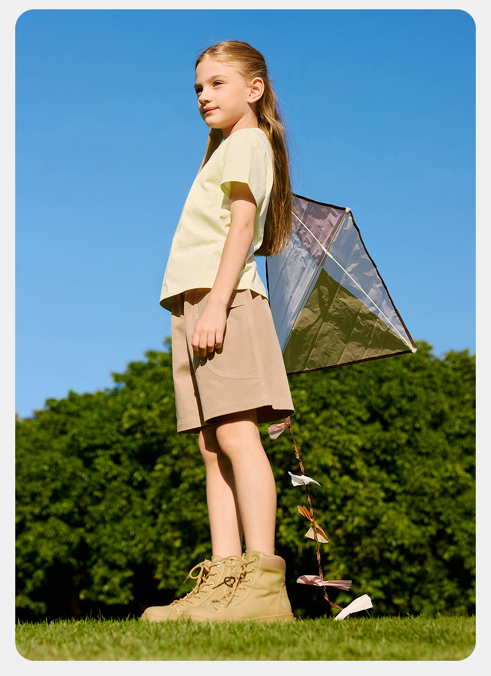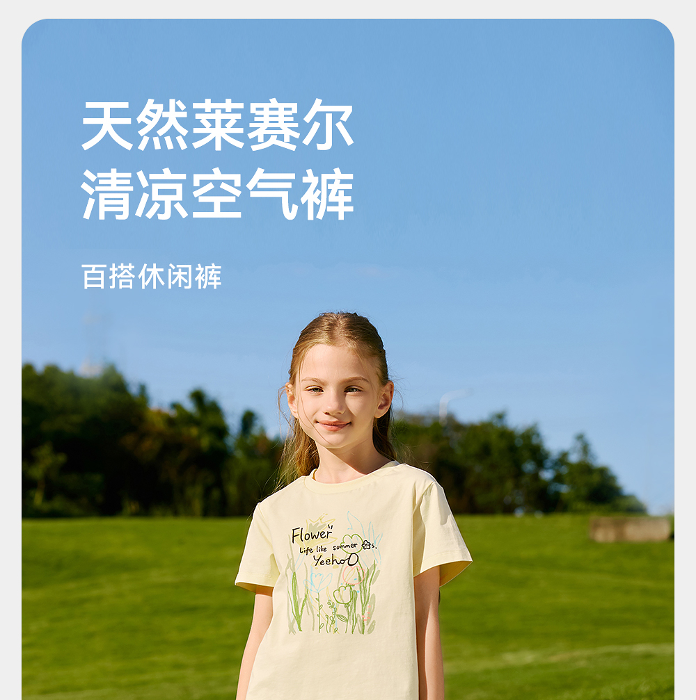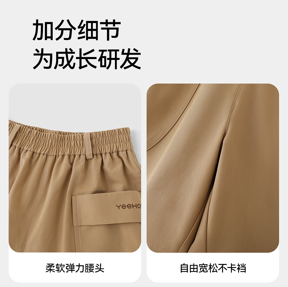 英氏儿童裤子夏季透气凉爽休闲裤中大童短裤透气女童裤子2025新款