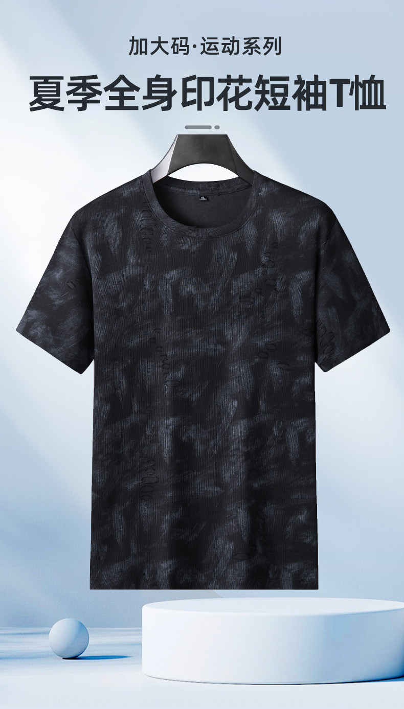 【DK】大依优型大码男装夏季印花短袖T恤圆领休闲棉质百搭短袖上衣